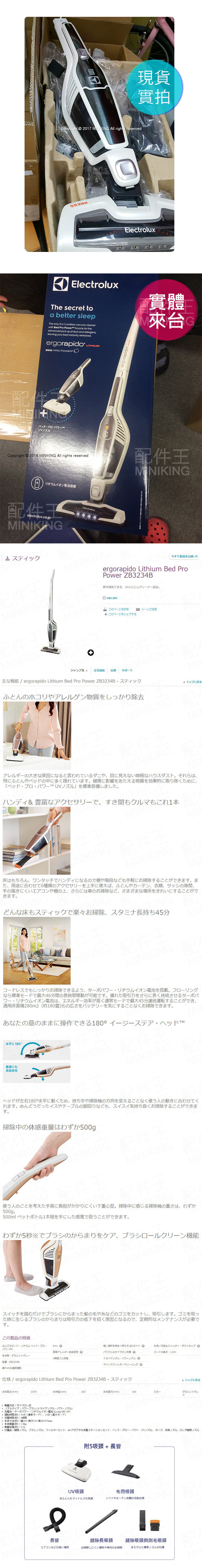 日本代購 Electrolux 伊萊克斯 ZB3234B 無線吸塵器 完美管家 3合1 吸塵器