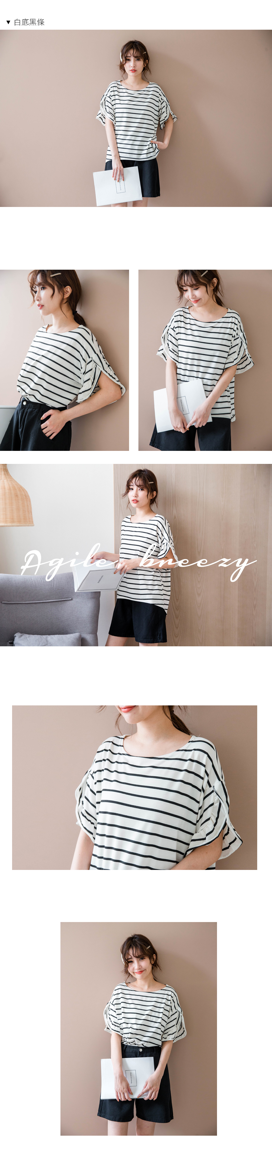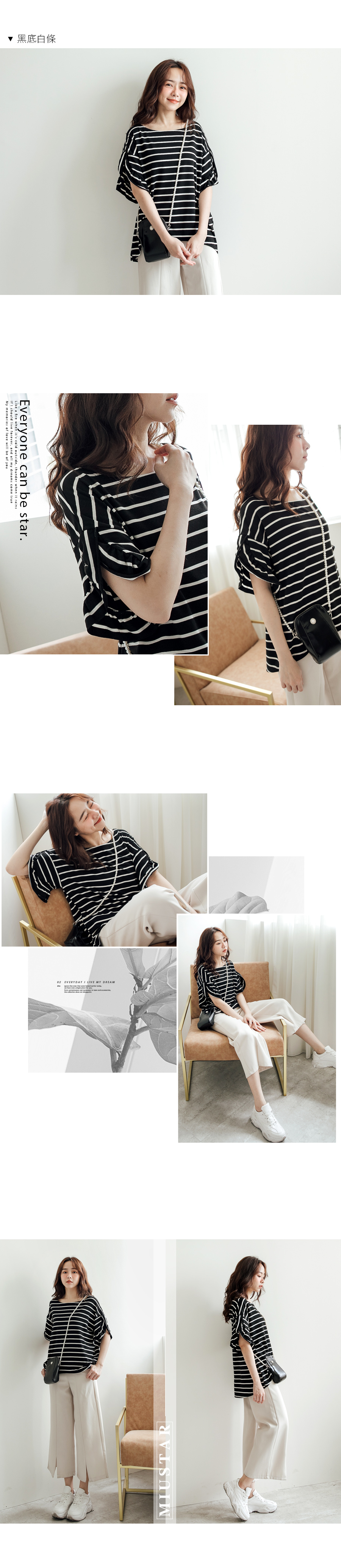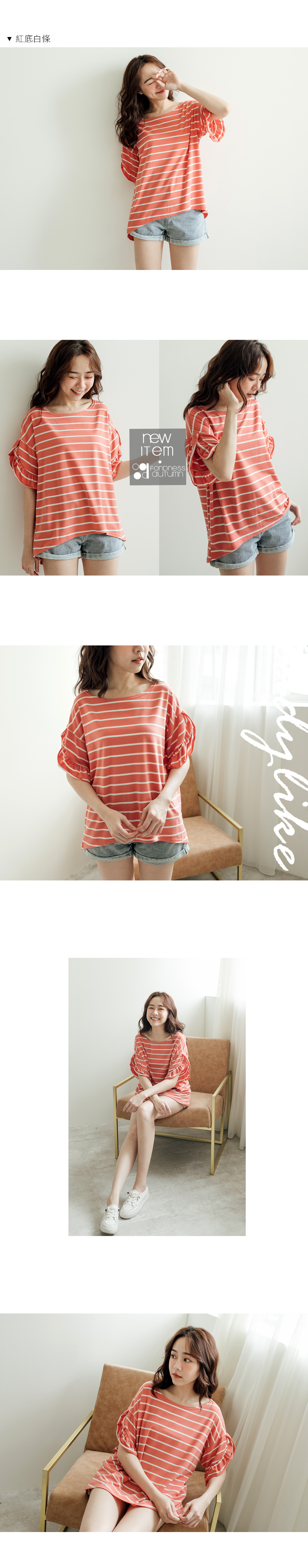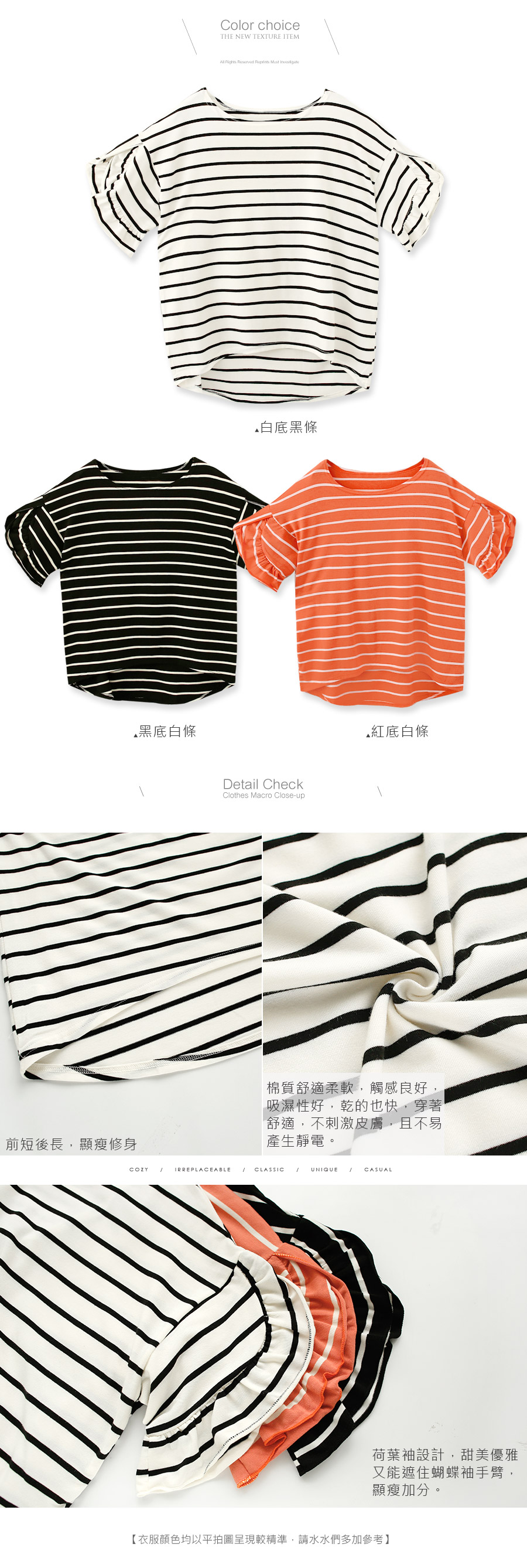 ★限時下殺$212★MIUSTAR 正韓-條紋荷葉袖前短後長寬版柔軟棉質上衣(共3色)0322 預購【NL0816RE】