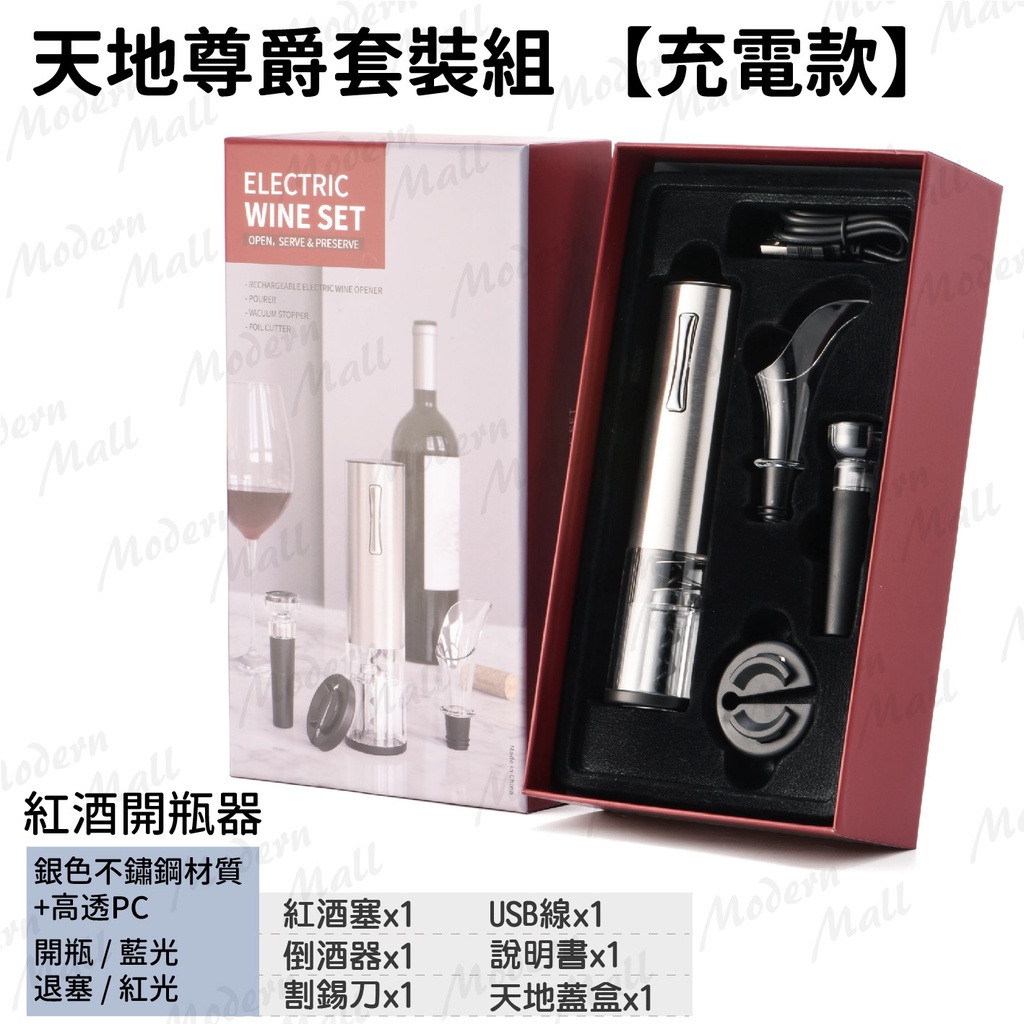 ✨產品名稱 紅酒天地尊爵套組-銀色不鏽鋼【充電款】