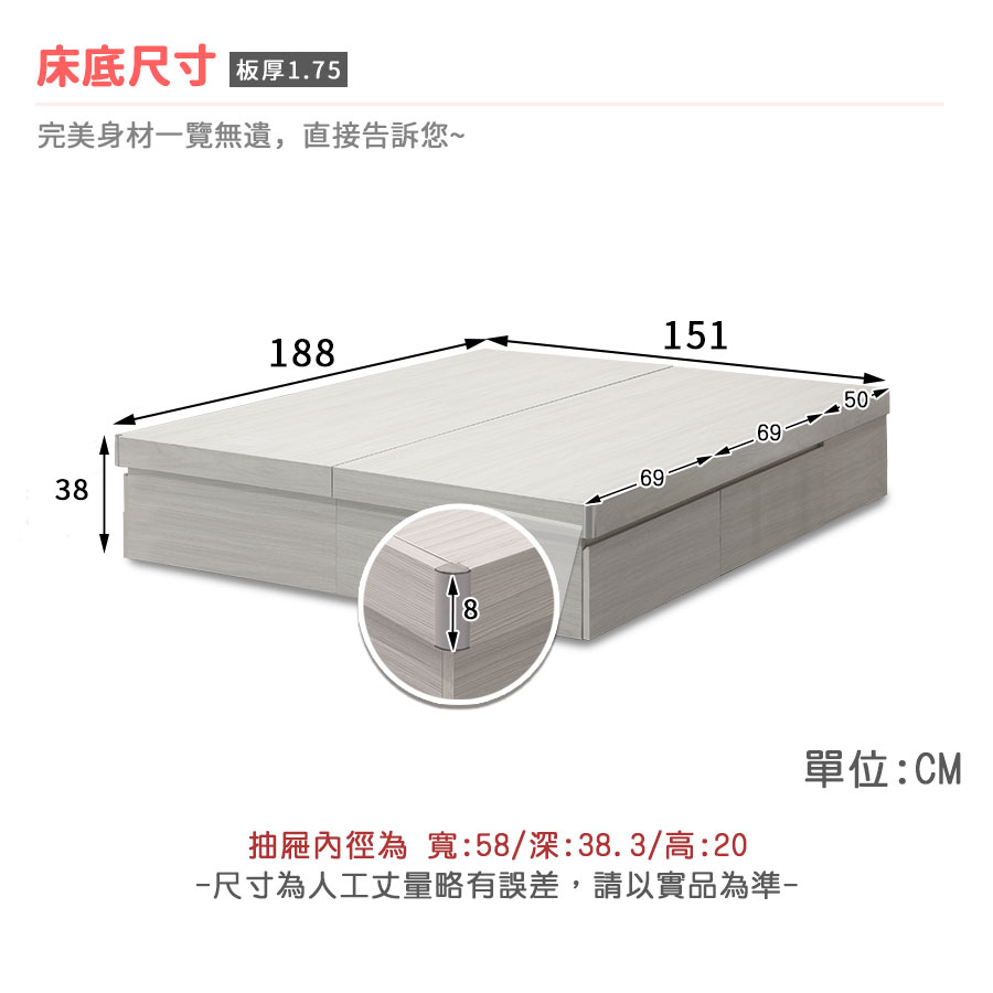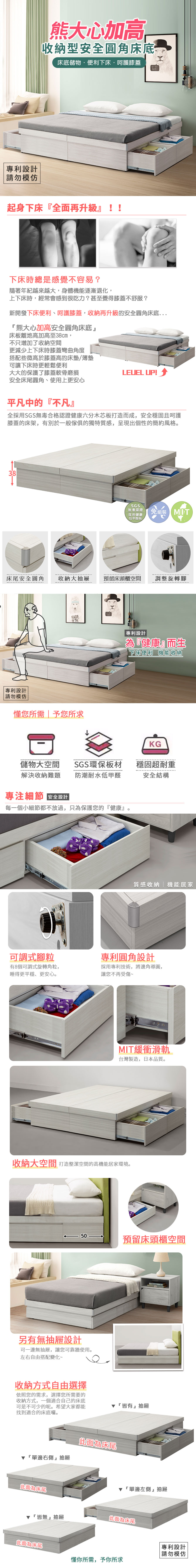 熊大心『加高』收納型安全圓角床底-5尺 六分木心板製造、F3低甲醛、標準雙人床、雙人床架【myhome8居家無限】★APP下單享點數4% 1
