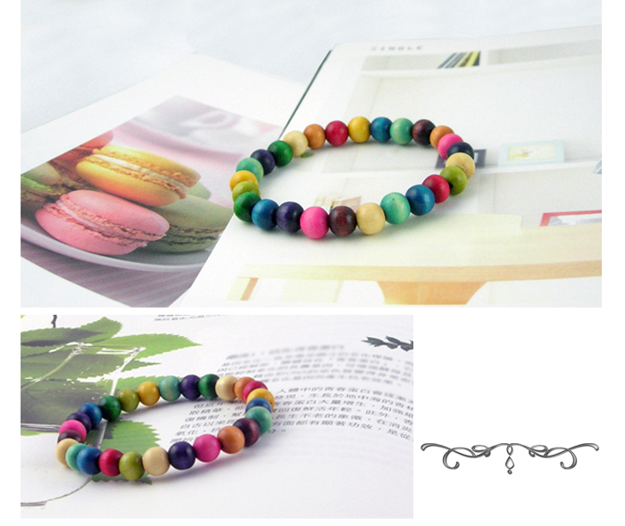 韓國進口 可愛魅力 甜美馬卡龍木珠彈力手環 (單只)