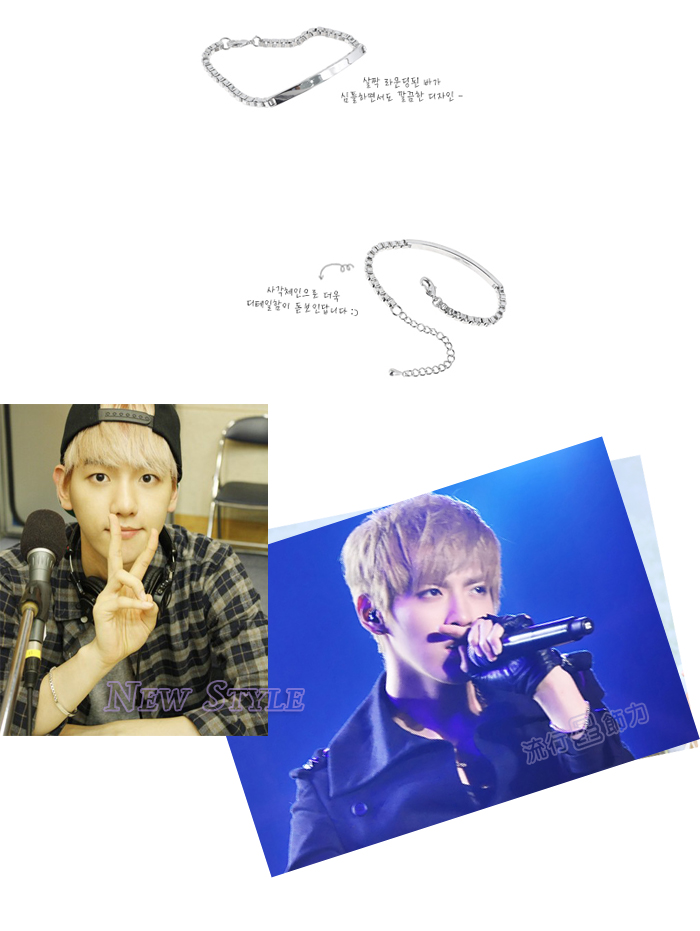 韓國進口 EXO 邊伯賢 吳亦凡 同款銀光平板手鏈手環 可當情侶對鍊 (單條價)