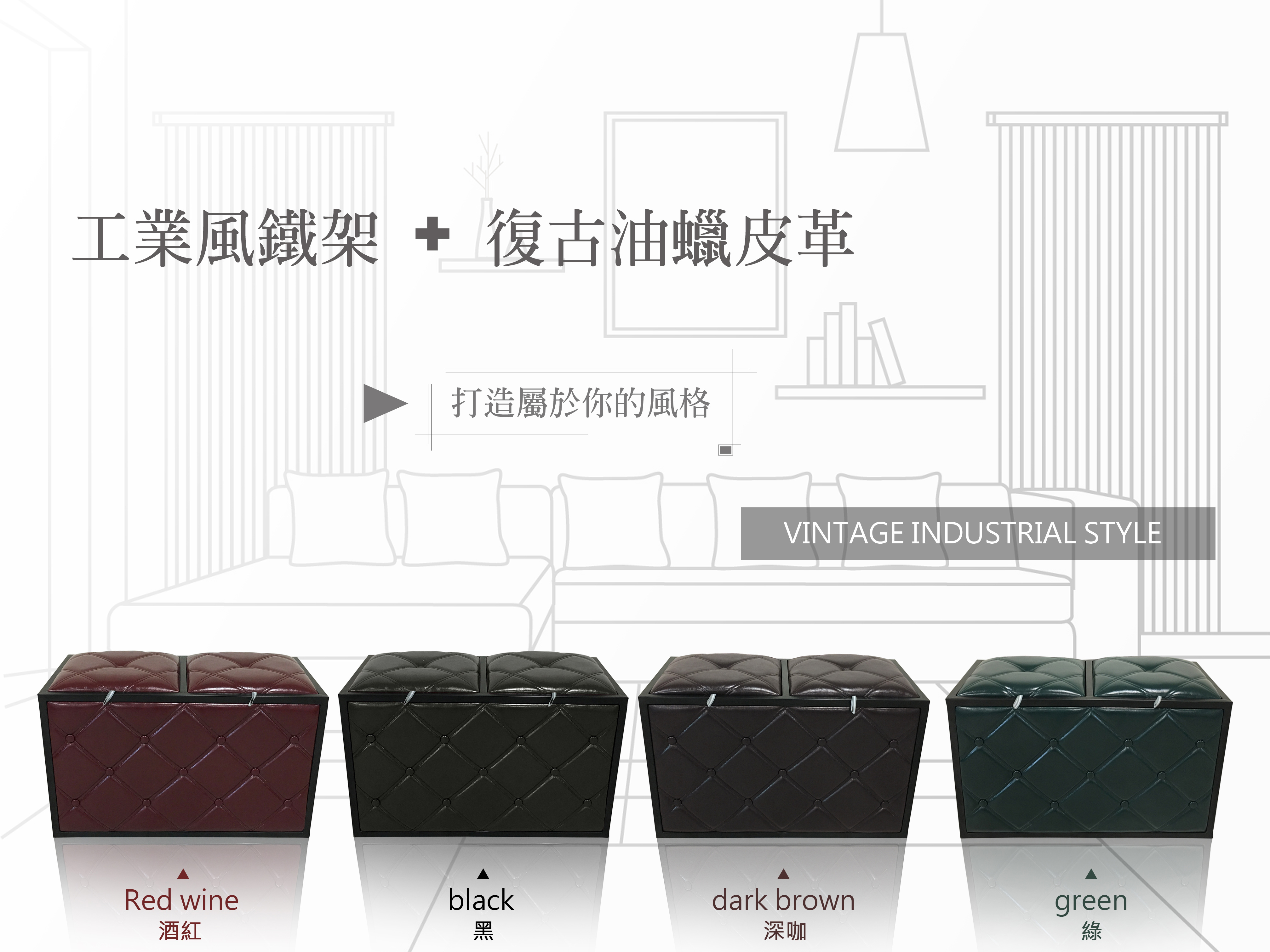 玄關穿鞋凳,足夠的空間收納,工業復古風的造型