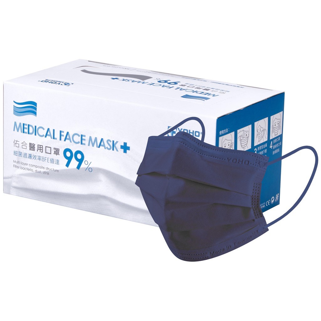 實體藥局✅ 佑合 平面醫療口罩 成人 兒童口罩 墨藍迪色 50入 盒 醫用口罩 平面口罩