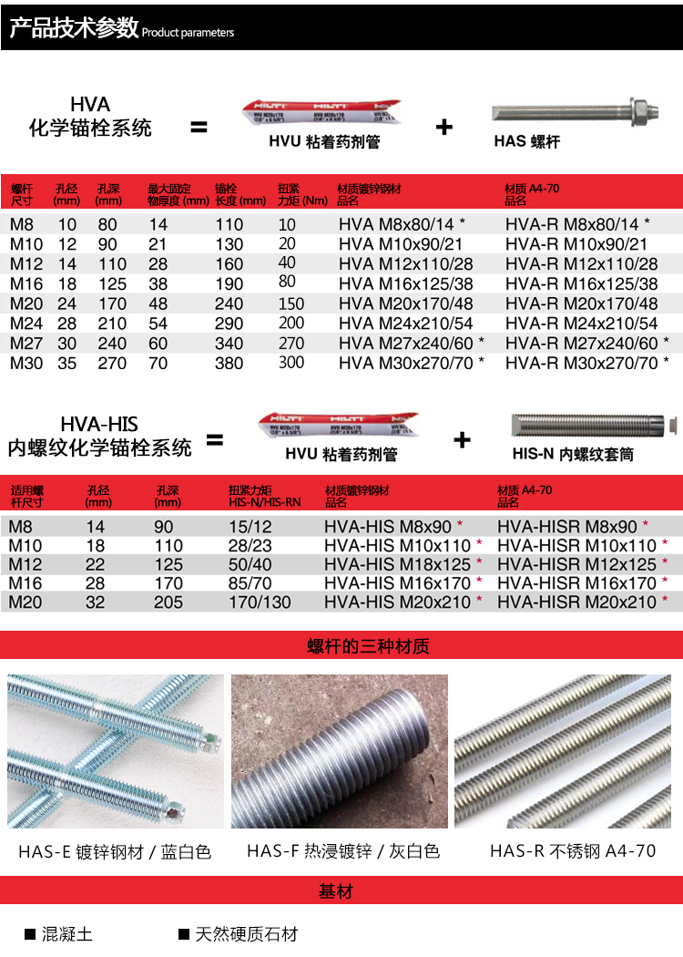 【咨詢客服應有盡有】德國喜利得化學錨栓藥劑M10M12M16M20M24化學螺栓HVA化學膨脹螺栓 1