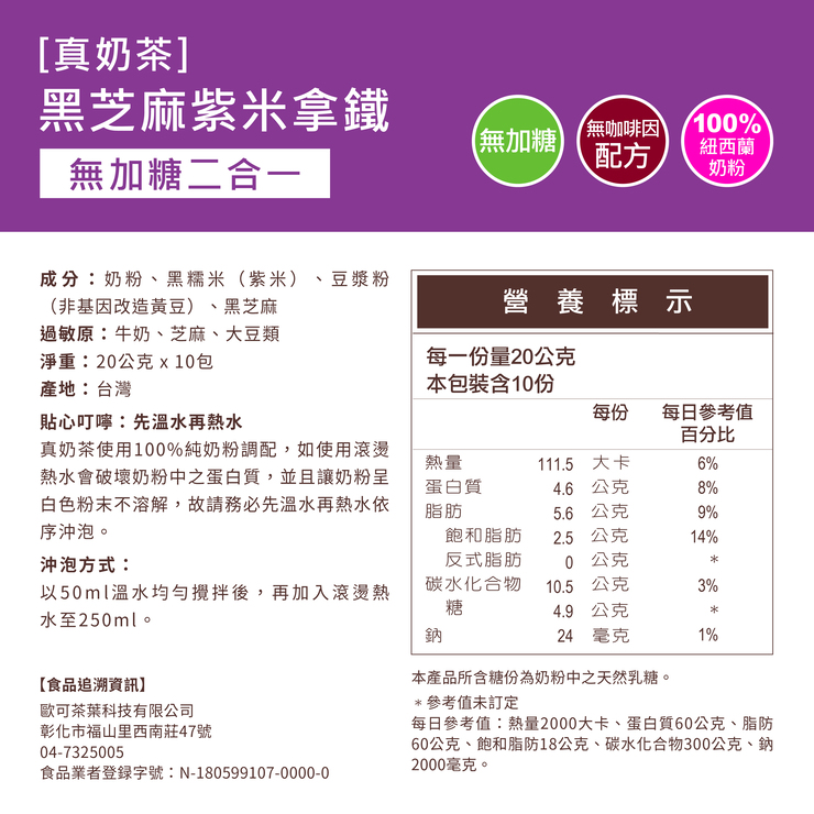 超養生黑芝麻,搭配營養紫米與紐西蘭奶粉,早餐來一杯健康真奶茶!網友激推歐可茶葉~