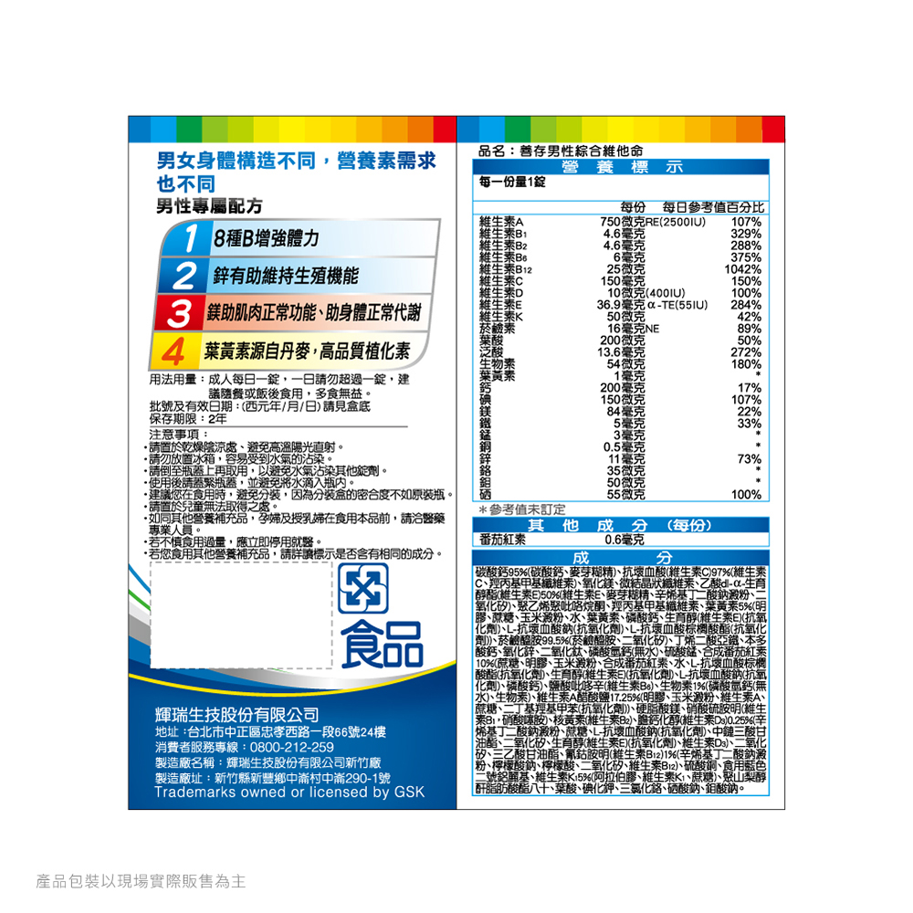 品名:善存 綜合維他命 男性