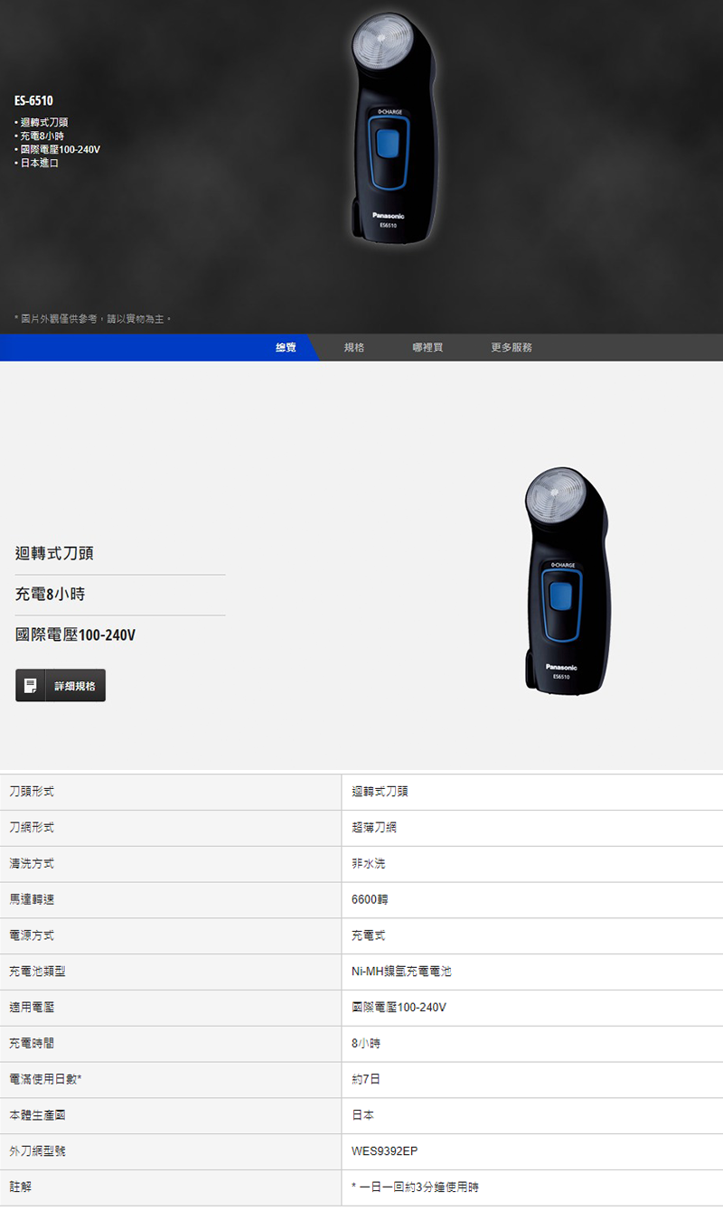 領券獨家最高9折【Panasonic】旋轉式電鬍刀(ES-6510)