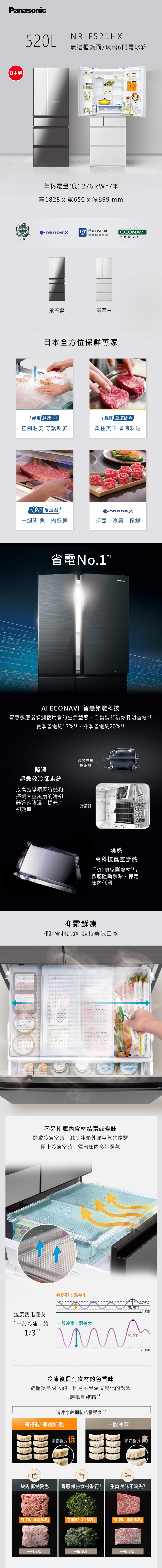 領券獨家最高9折【Panasonic】520L六門日系上質系列 無邊框鏡面/玻璃電冰箱 (NR-F521HX)(鑽石黑/翡翠白)