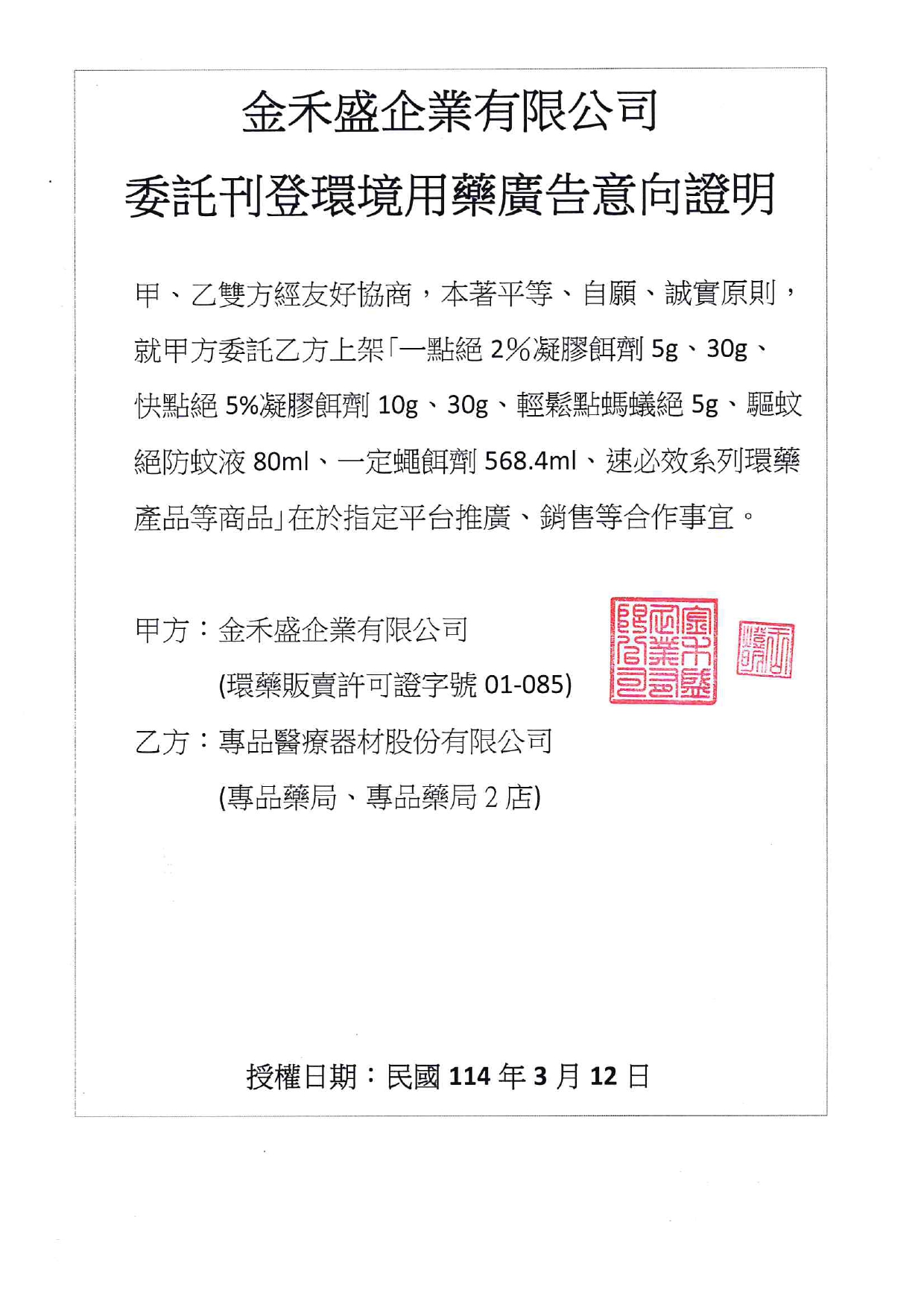 環境用藥販賣業許可執照字號或病媒防治業許可執照字號:環藥販賣字第01-085號
