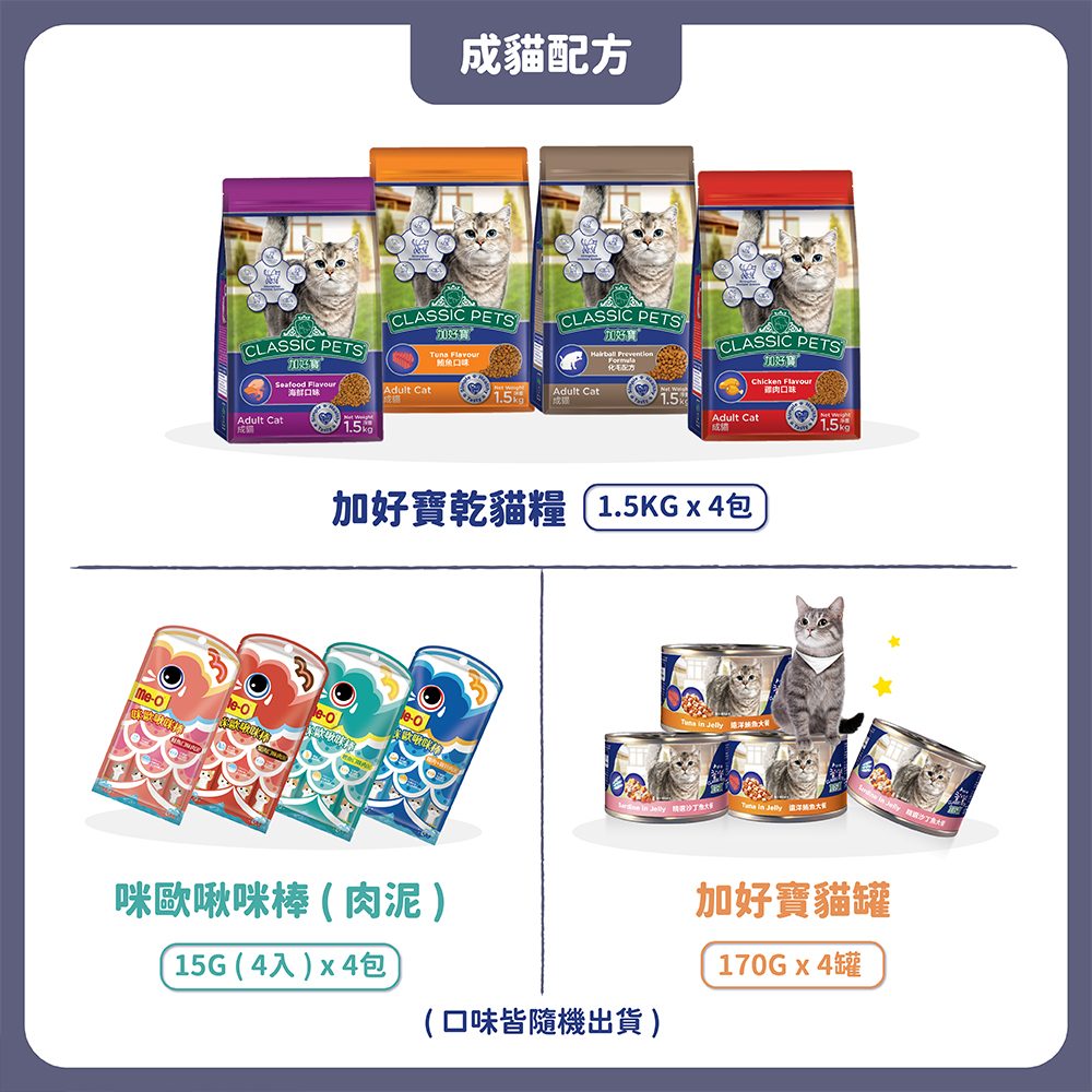 Classic Pets 加好寶-貓貓超值組(貓糧x4+貓罐x4+肉泥x4)