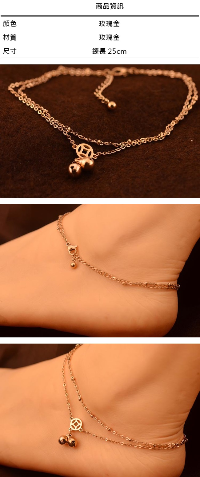 6. 現貨+預購 玫瑰金腳鍊 銀飾-時尚雙鍊銅錢鈴鐺母親節生日情人節禮物女飾品71ak68【獨家進口】【米蘭精品】