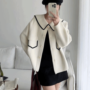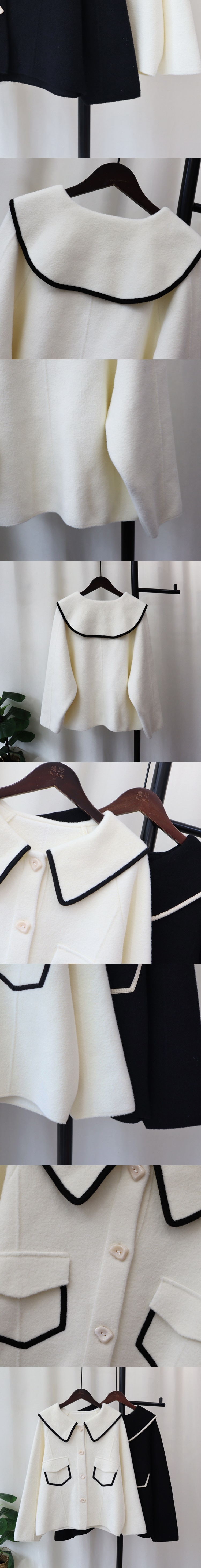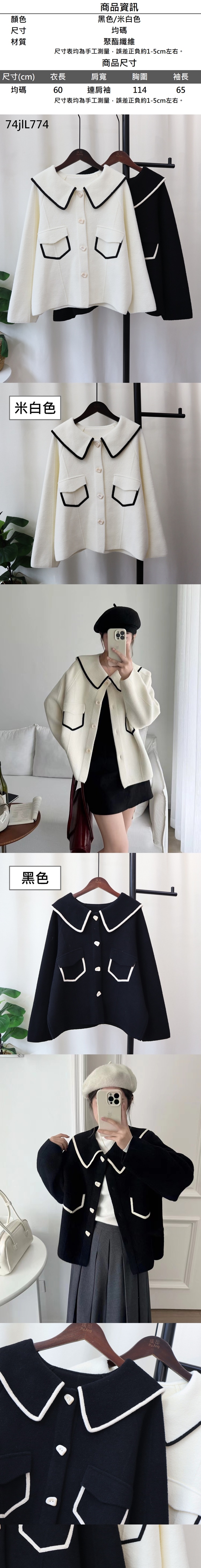 5. 現貨+預購 針織外套長袖毛衣-翻領幾何邊氣質雙面呢針織女外套2色74jl82【獨家進口】【米蘭精品】