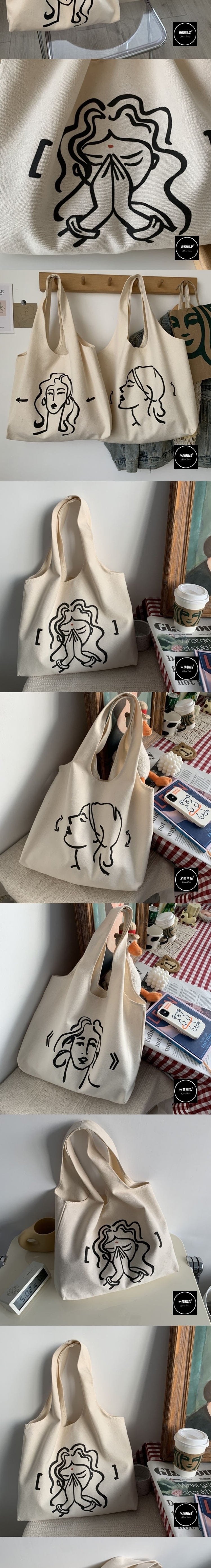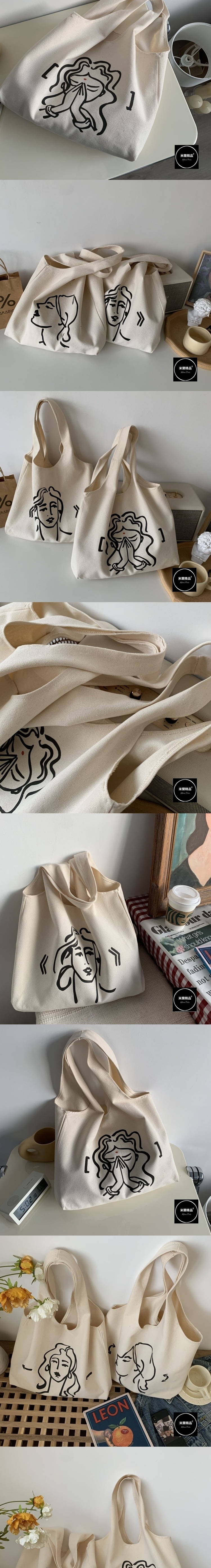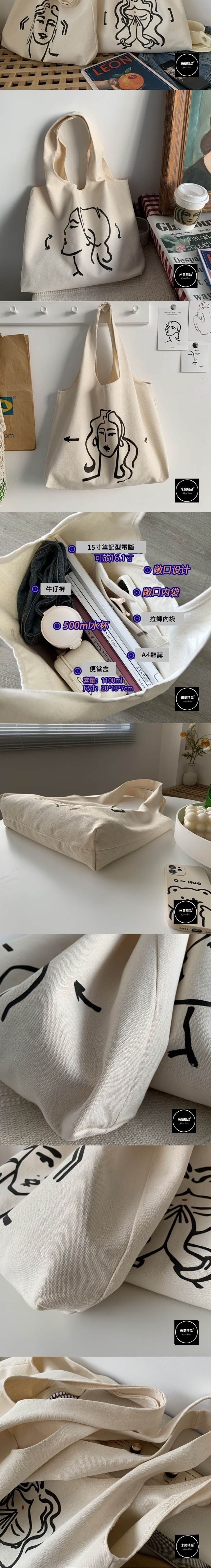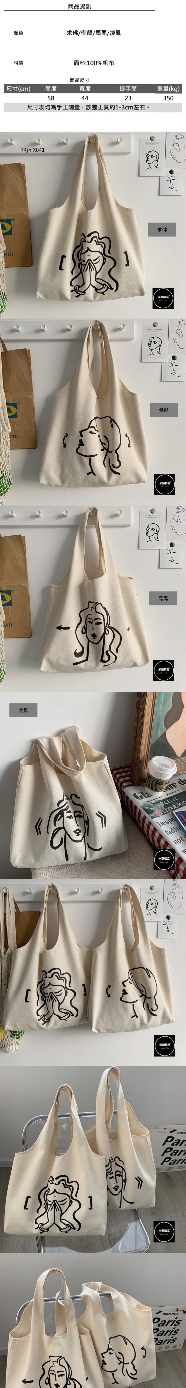 現貨+預購 手提包帆布肩背包托特包側背包單肩背包休閒隨身女包包-簡約復古插畫背心4色74jn58【獨家進口】【米蘭精品】 3