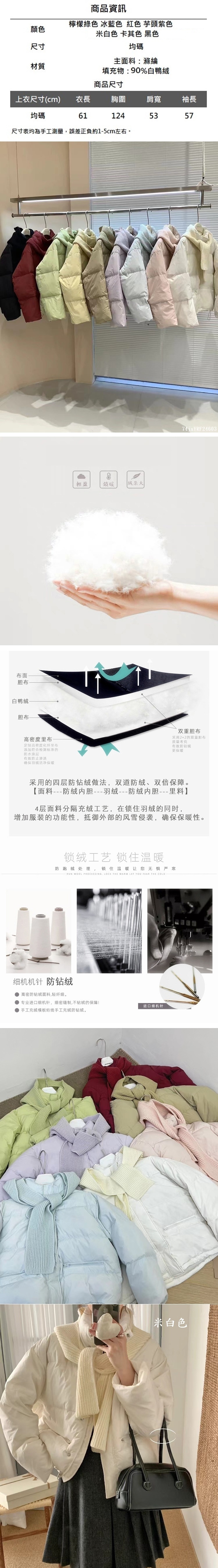 5. 現貨+預購 真羽絨90%鴨絨羽絨外套-甜美立領可脫卸圍巾帽加厚麵包服女夾克7色74jx44【獨家進口】【米蘭精品】