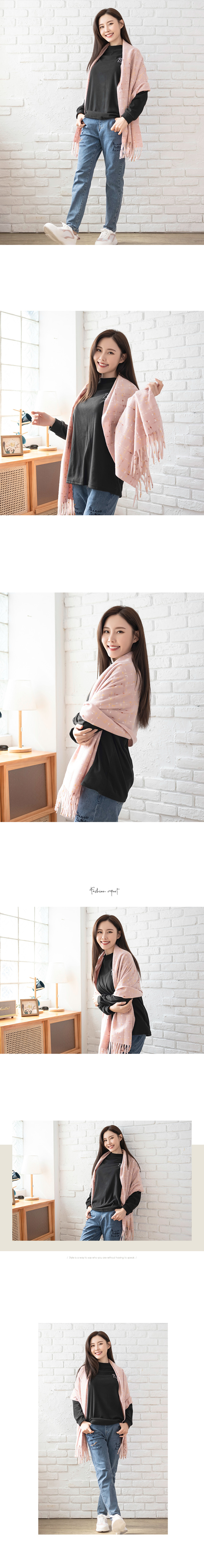 圍巾下襬設計有短流蘇,更具層次感。米白、粉色和咖色三種色調,