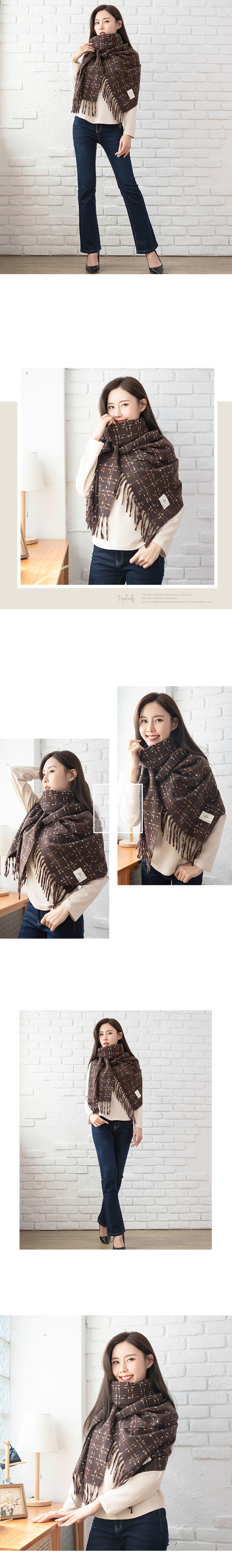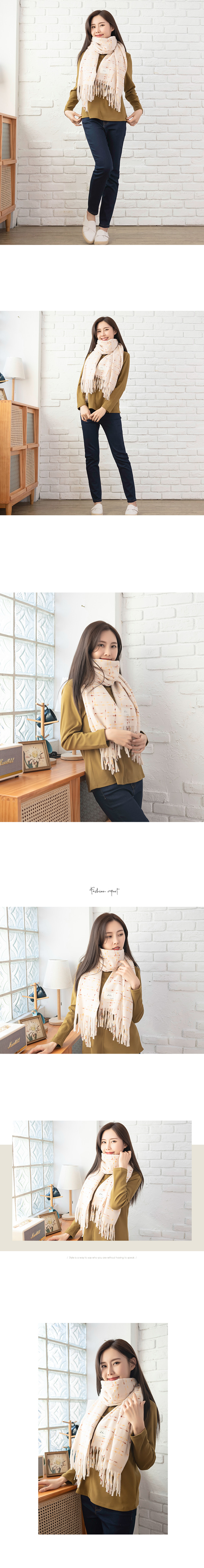 撞色--繽紛造型點線條仿羊絨格子流蘇圍巾(米白.粉.咖F-F)-Z72眼圈熊中大尺碼