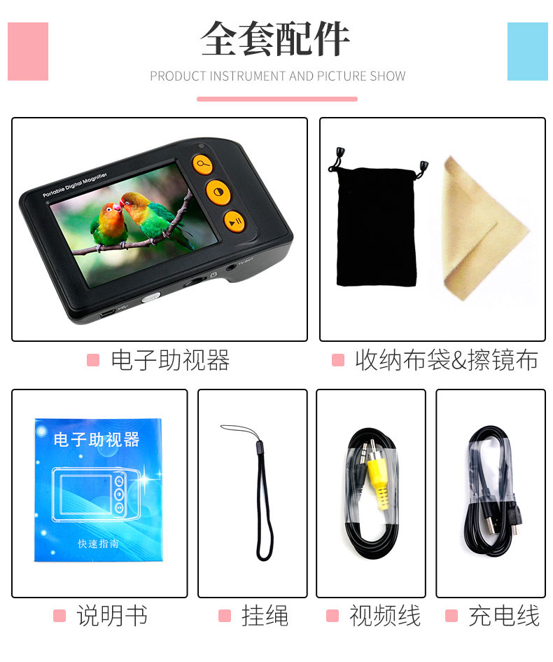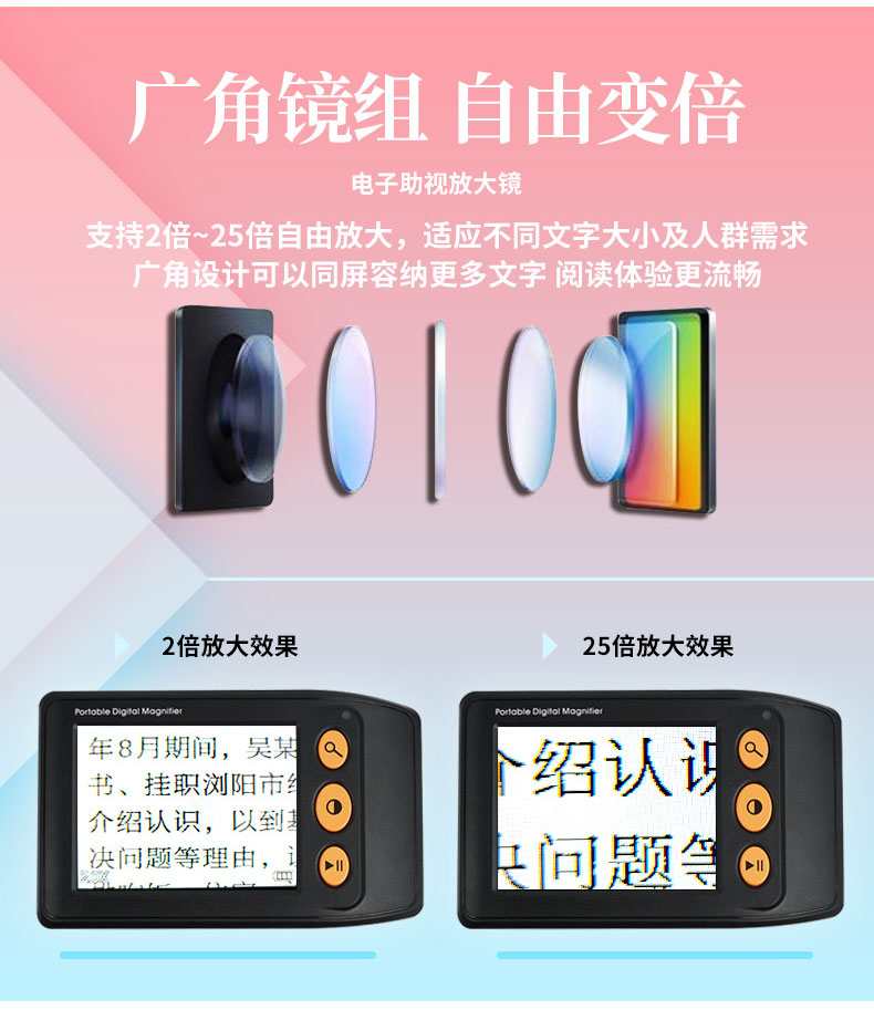 5. 拜視通數碼放大鏡閱讀低視力弱視3.5寸助視器兒童手持看書學習老人高清高倍便攜25連接電視放大手機屏幕1000