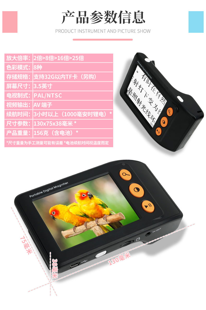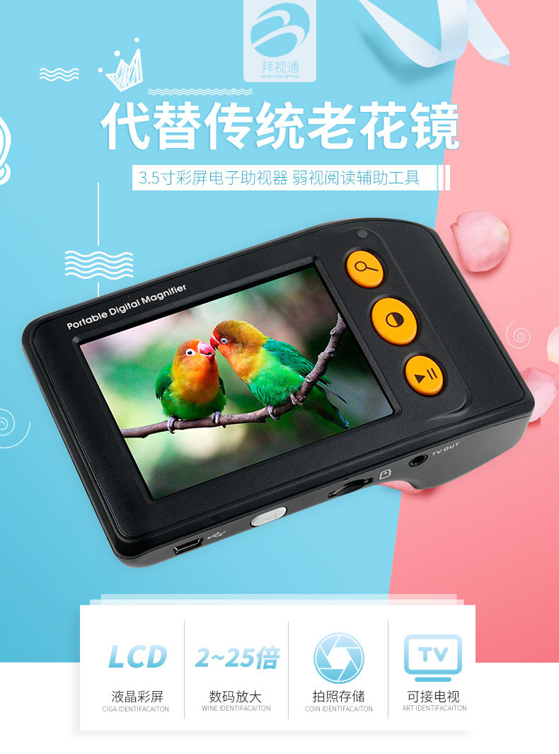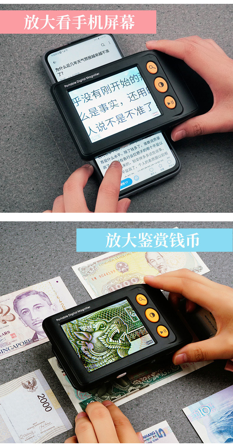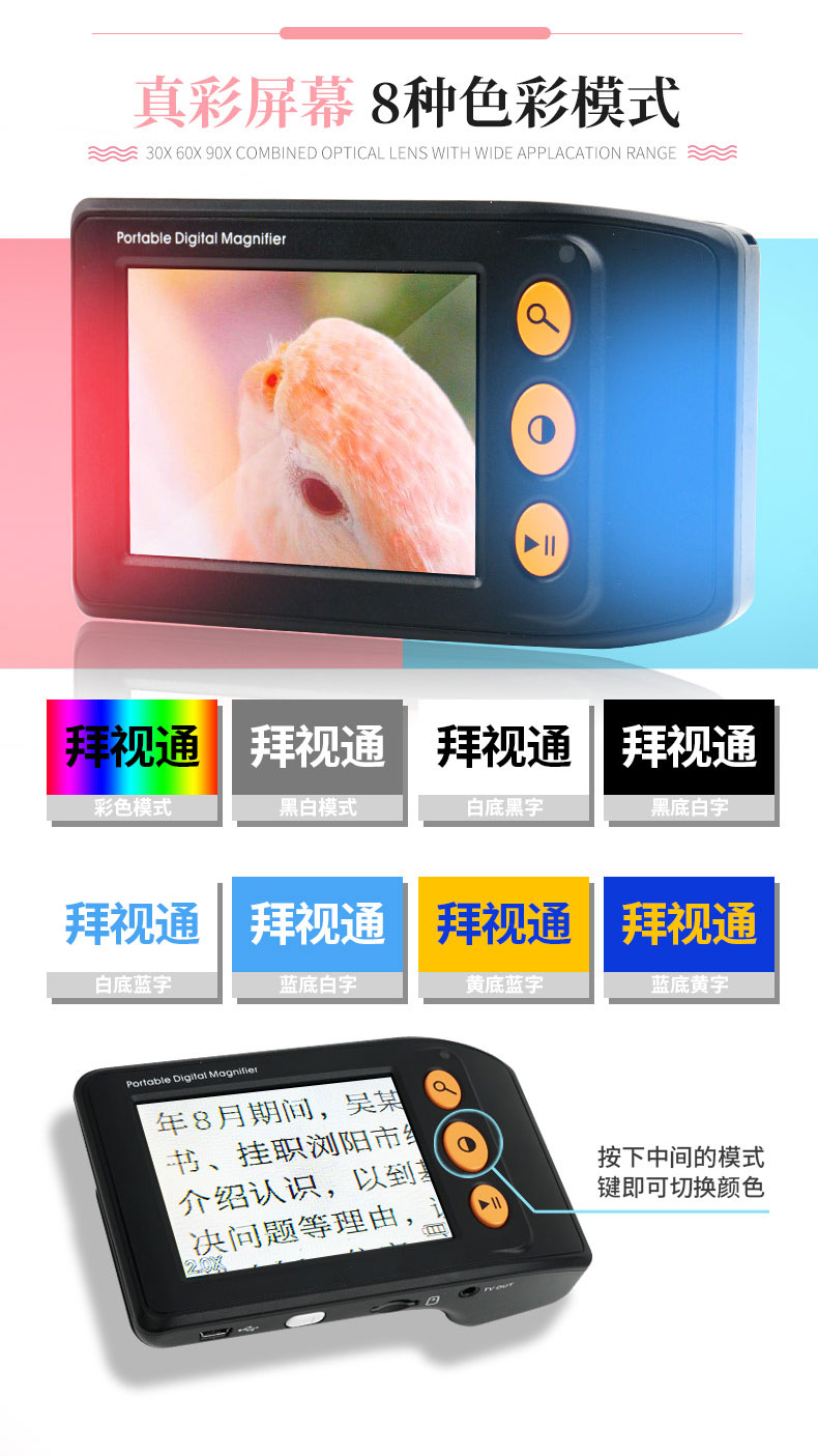 拜視通數碼放大鏡閱讀低視力弱視3.5寸助視器兒童手持看書學習老人高清高倍便攜25連接電視放大手機屏幕1000 7