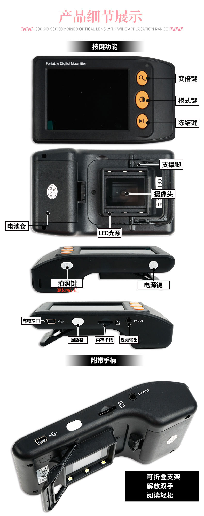 拜視通數碼放大鏡閱讀低視力弱視3.5寸助視器兒童手持看書學習老人高清高倍便攜25連接電視放大手機屏幕1000 6