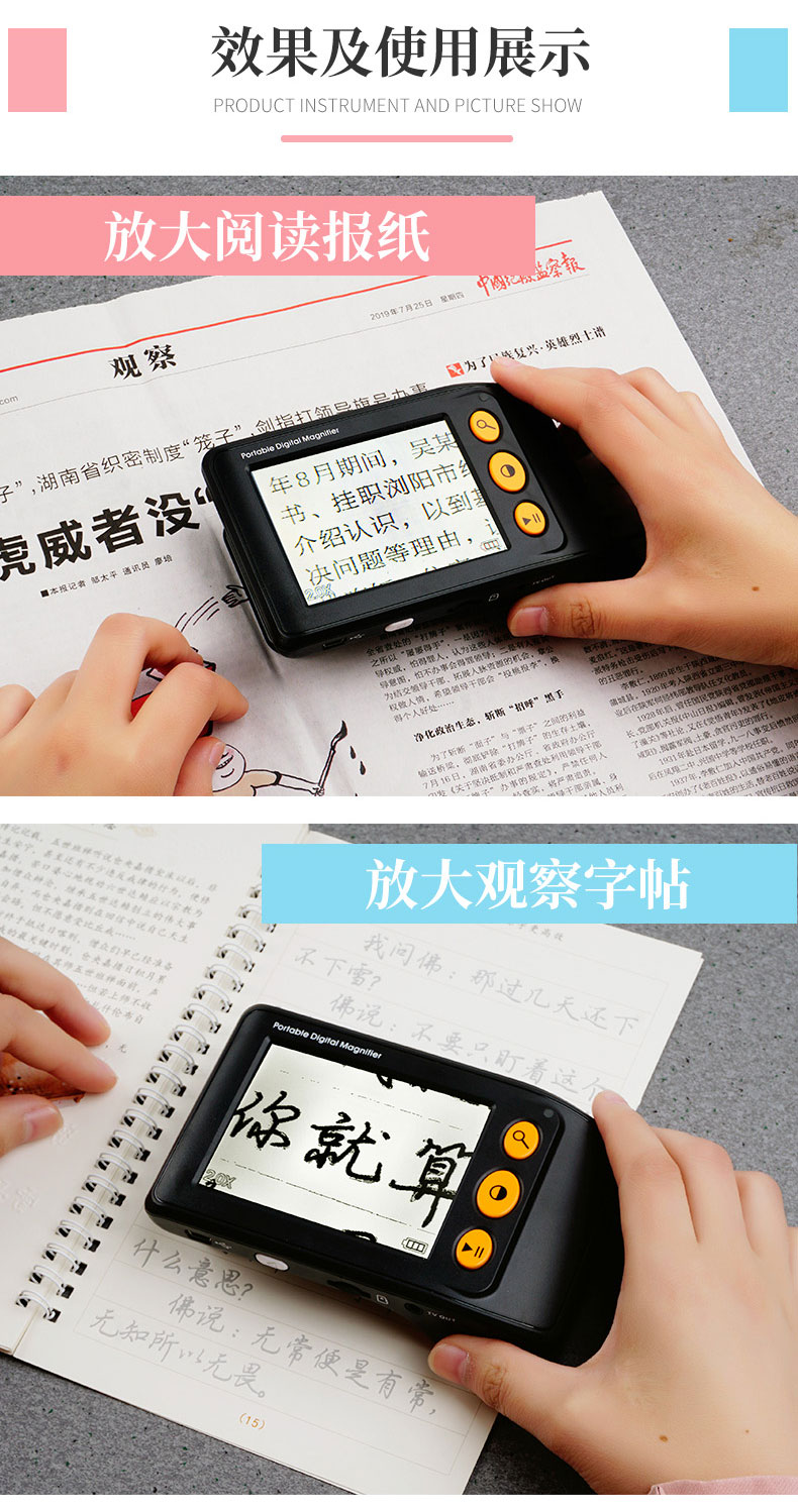 拜視通數碼放大鏡閱讀低視力弱視3.5寸助視器兒童手持看書學習老人高清高倍便攜25連接電視放大手機屏幕1000 4