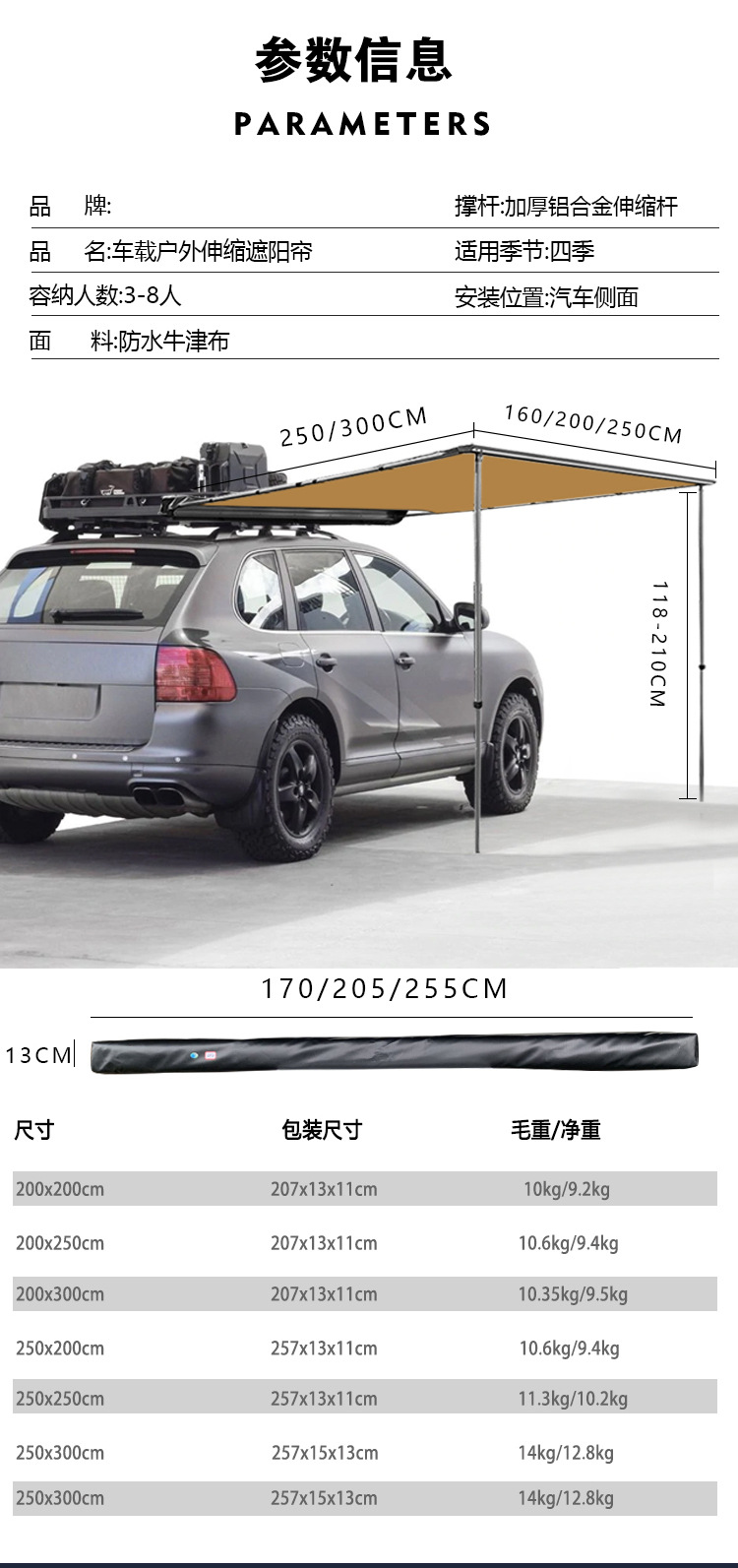 6. 汽車載戶外野營防雨露營車邊側篷裝備天幕車邊帳篷遮陽棚 小山好物嚴選