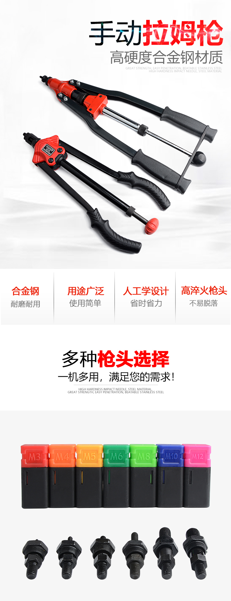 用途:最適合于主要使用鉚螺母M4、M5、M6、M8、M10的情況。