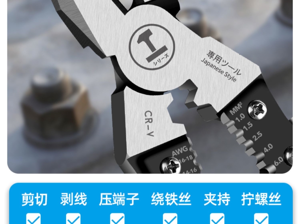 6. 日本進口斜口鉗電工專用多功能剝線鉗剪鋼絲省力原裝老虎鉗小家用