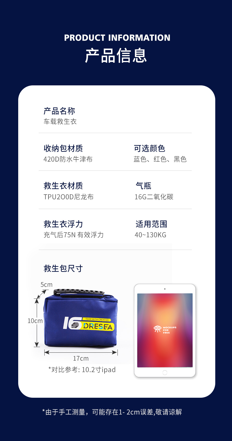 車載救生衣配16g充氣瓶,氣瓶是一次性使用