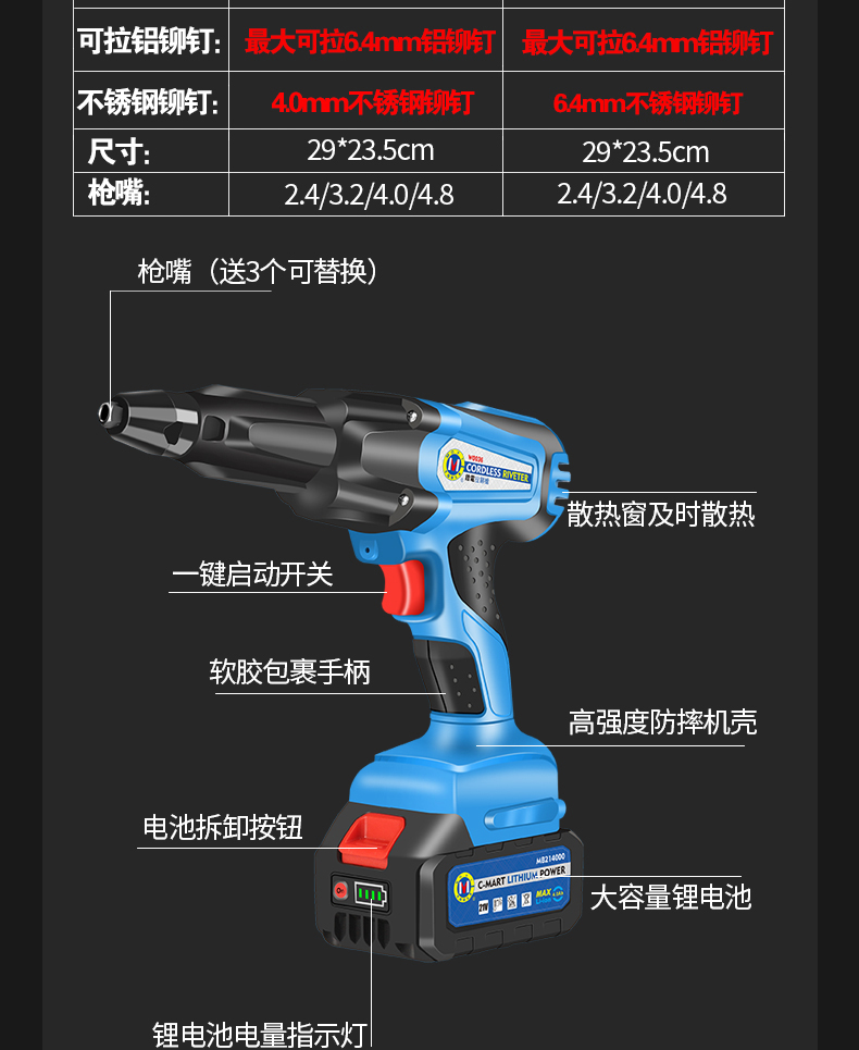 抽芯鉚釘槍電動拉釘鉚槍拉鉚槍柳冒卯釘搶全自動螺母槍鋰電拉丁槍 4
