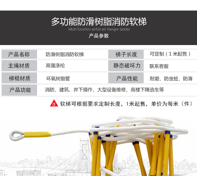 軟梯繩梯消防救援梯樹脂攀爬梯訓練梯逃生梯高空作業梯下井工程梯 小山好物嚴選 2