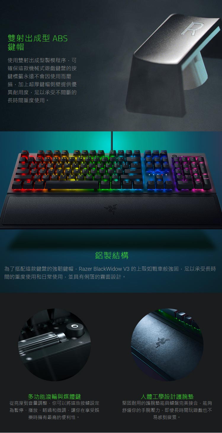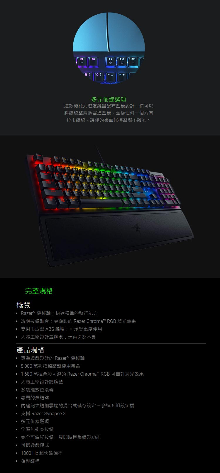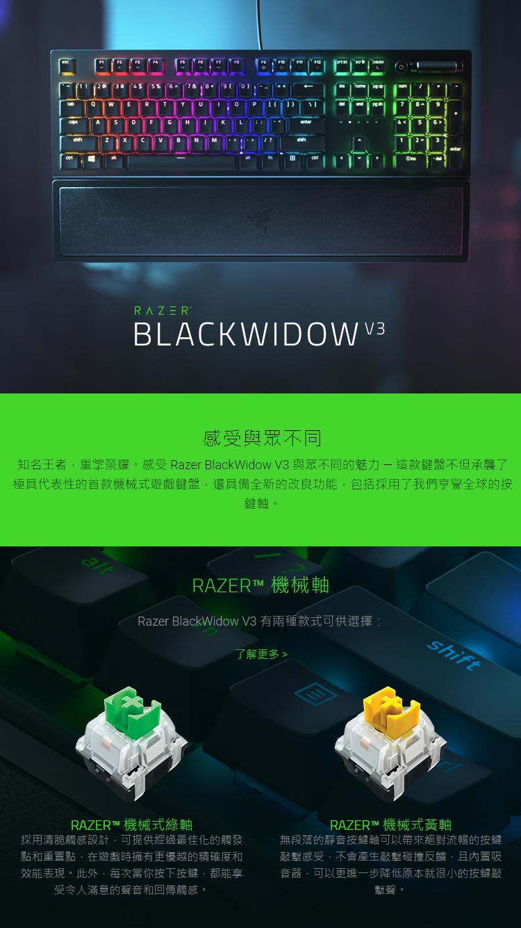 Razer 雷蛇|BlackWidow V3 黑寡婦蜘蛛幻彩版 機械式鍵盤(中文/綠軸)