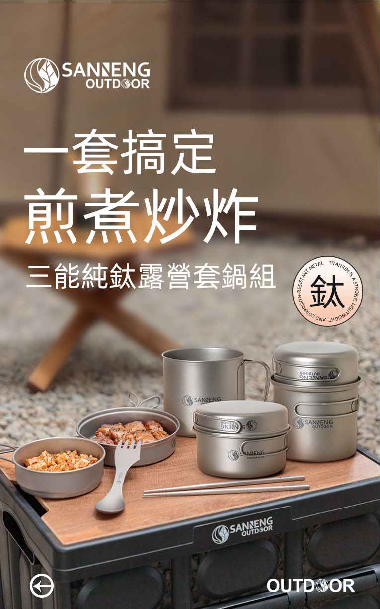 #106001 #106002 #106003 #摺疊套鍋 #純鈦套鍋 #套鍋 # 戶外鍋碗 #戶外用品 #烘焙 #烘焙用品 #OUTDOOR #SANNENG #三能 本商城購物享有15天鑑賞期,若商品因消費者個人不當使用拆卸產生人為因素造成故障、損毀、磨損、擦傷、刮傷、髒污、包裝破損不完整者,或是附配件不齊者,恕不接受退貨。