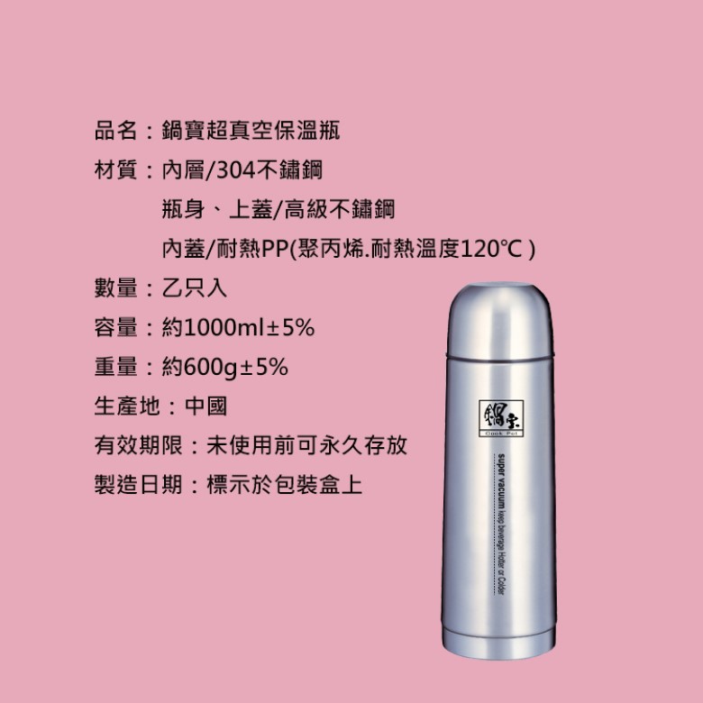 5. 鍋寶 超真空保溫瓶(1000cc) [大買家]