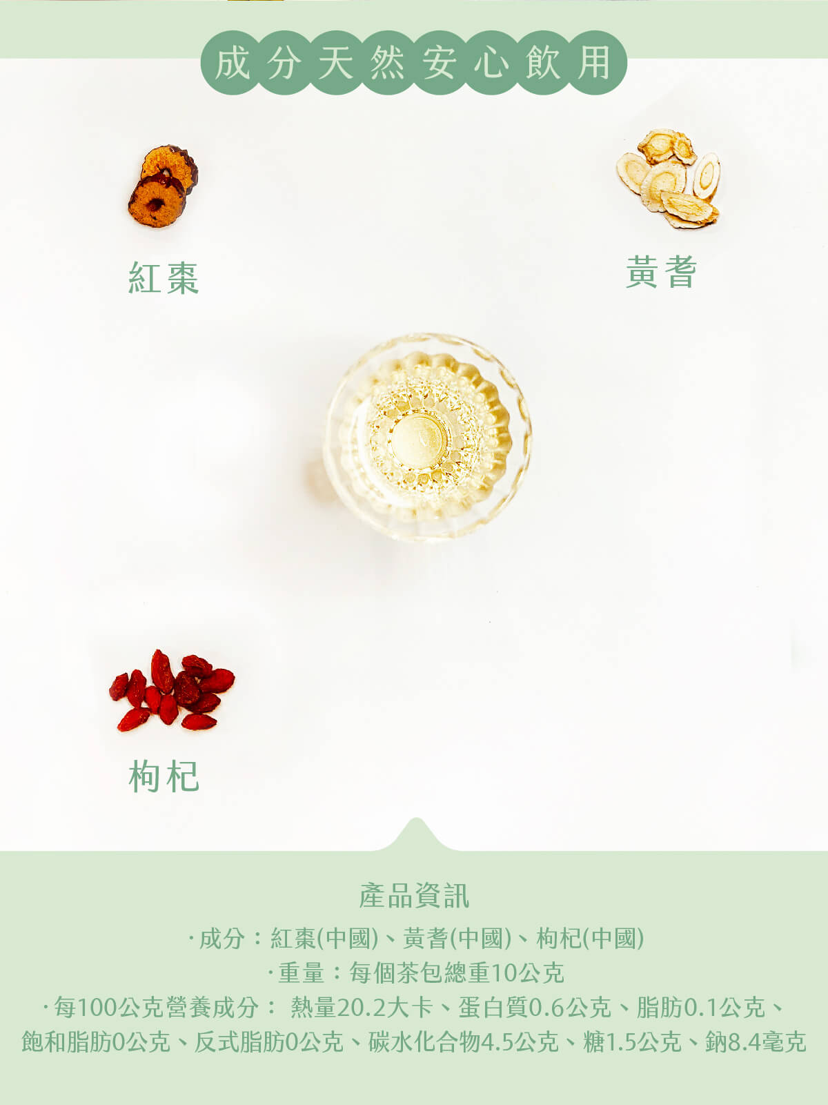 ‧成分:紅棗(中國)、黃耆(中國)、枸杞(中國)