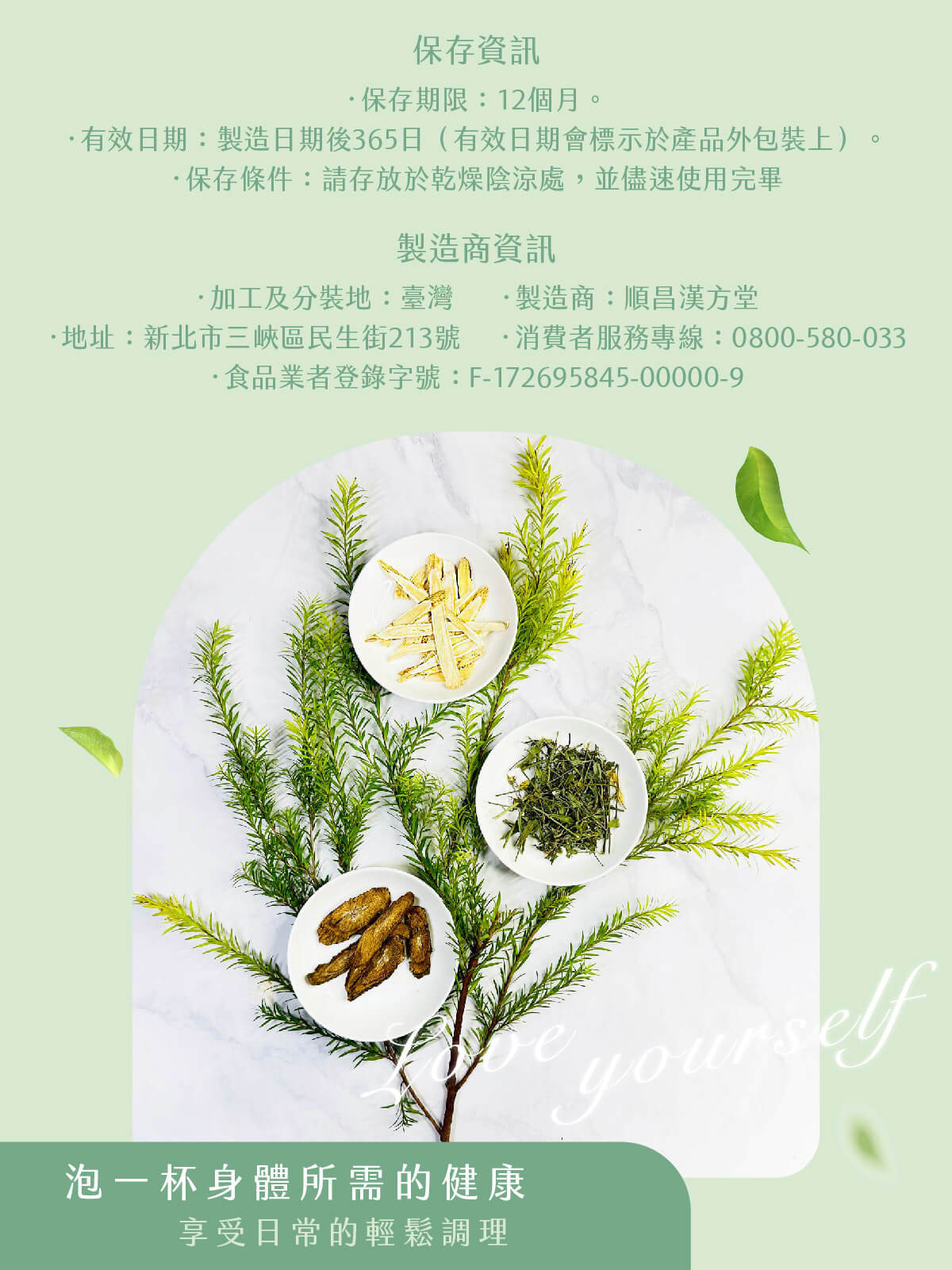服務時間:10:00-21:00 客服電話:0800-580-033 客服信箱:sclifeherb@gmail.com 粉絲專頁:順昌漢方堂