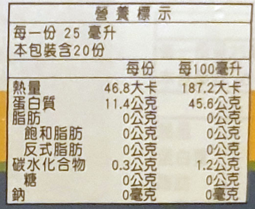營養標示: