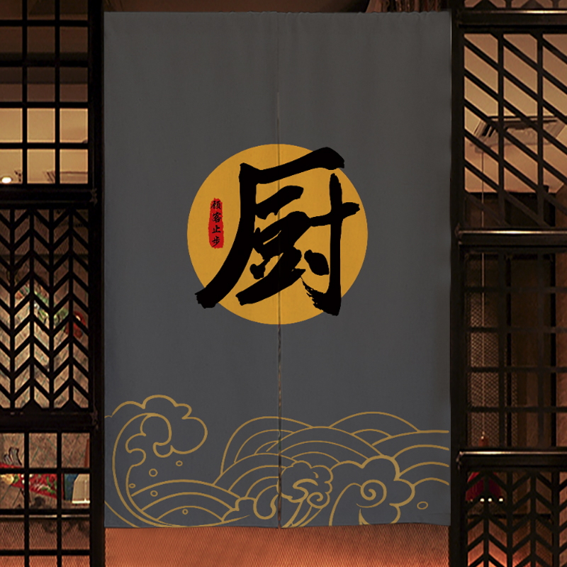 定制廚房火鍋布藝飯店餐廳商用布簾玄關隔斷廣告logo掛簾門簾半簾 6