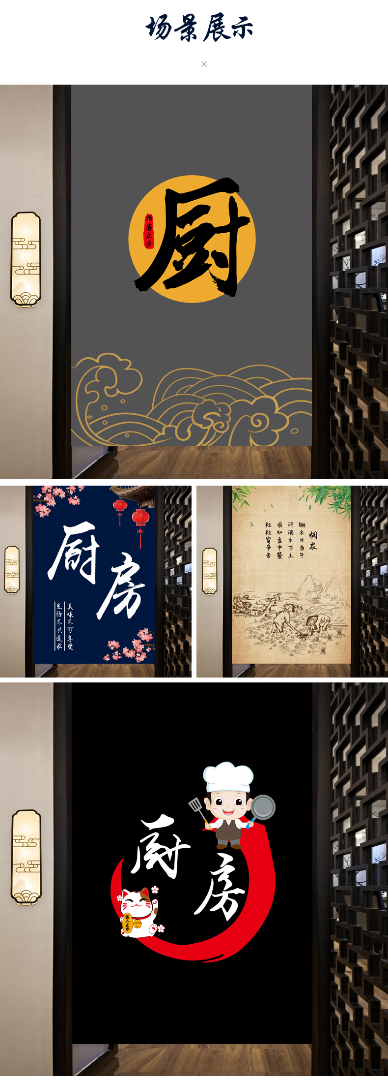 5. 定制廚房火鍋布藝飯店餐廳商用布簾玄關隔斷廣告logo掛簾門簾半簾