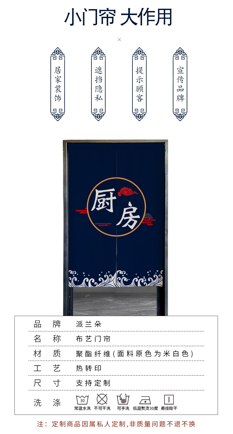 定制廚房火鍋布藝飯店餐廳商用布簾玄關隔斷廣告logo掛簾門簾半簾 4