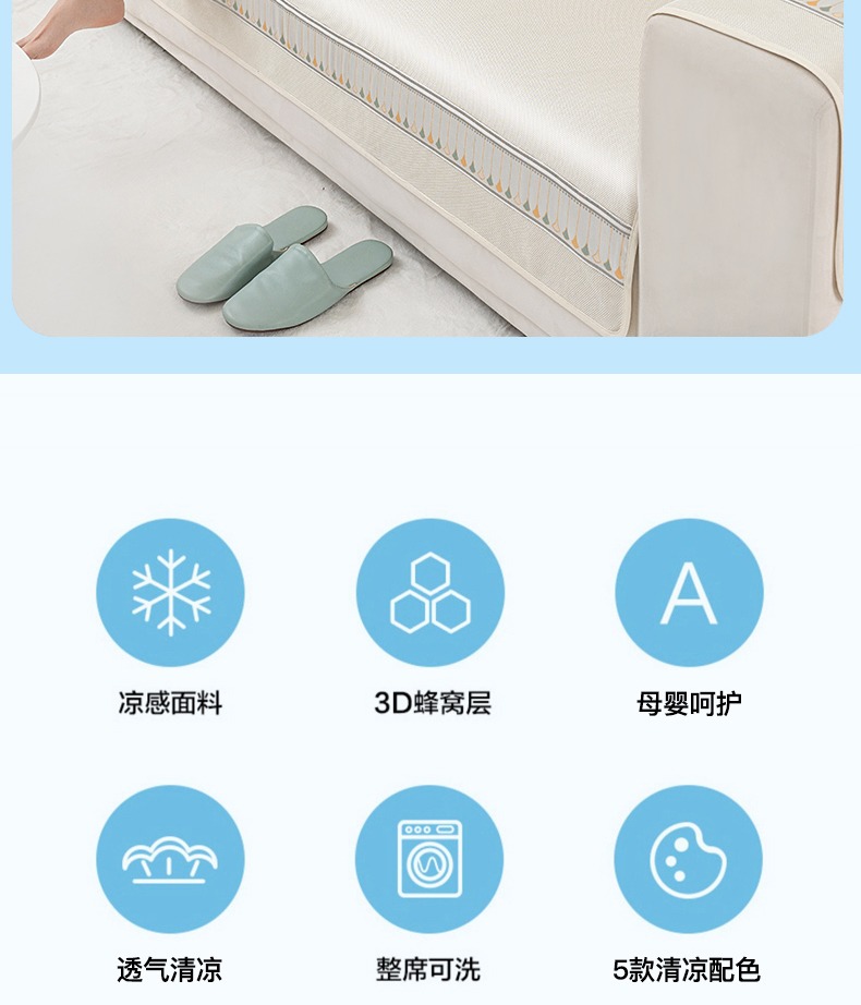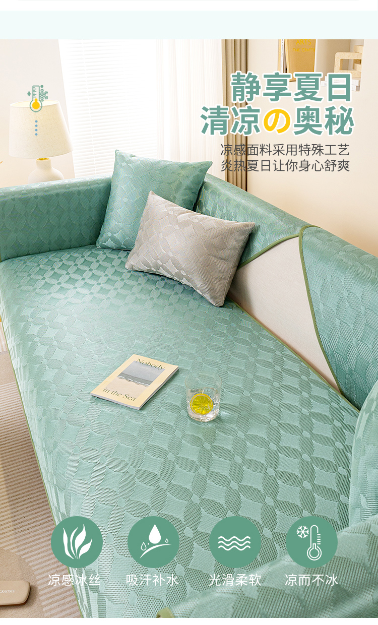5. 冰丝沙发垫夏季夏天款防滑凉席凉垫坐垫子四季通用轻奢皮沙发套罩