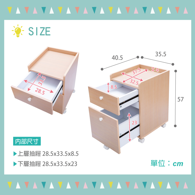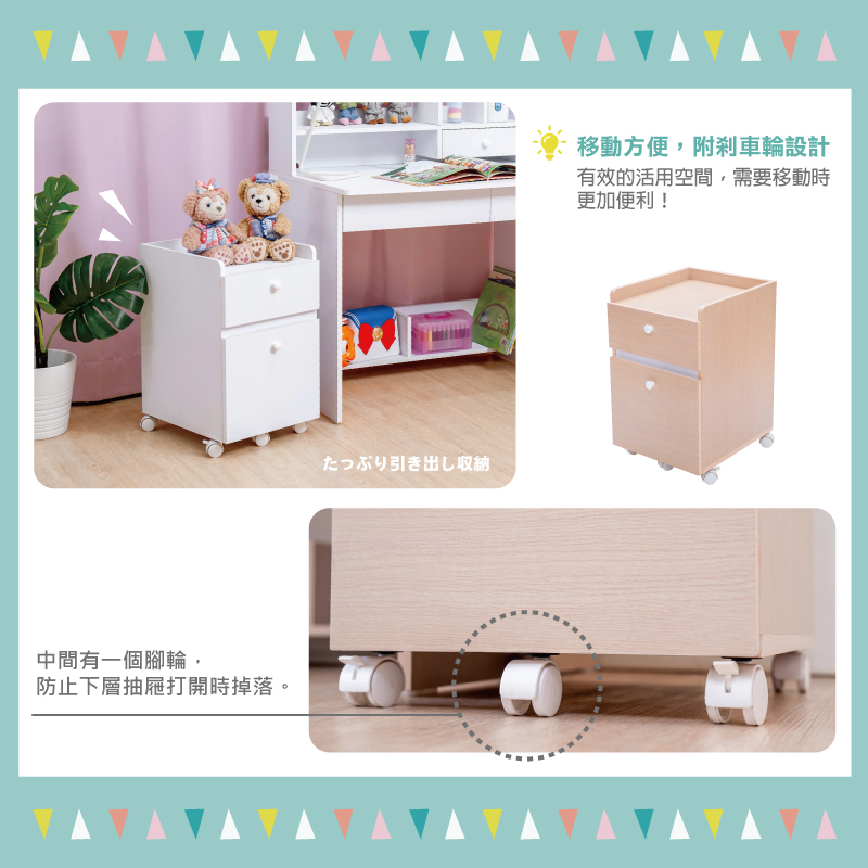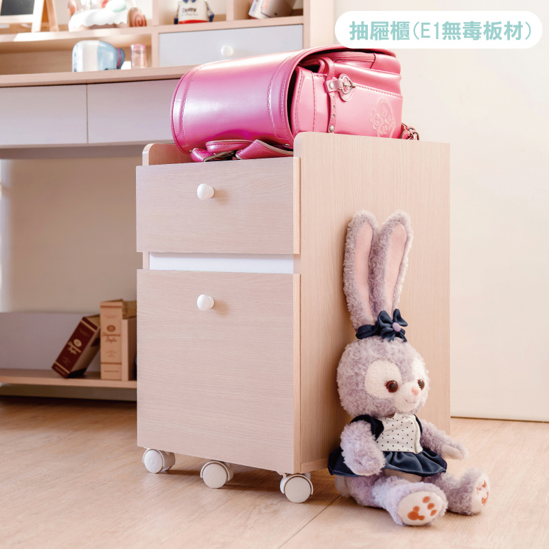 ▲材質:E1無毒板材、木把手、尼龍輪、金屬五金