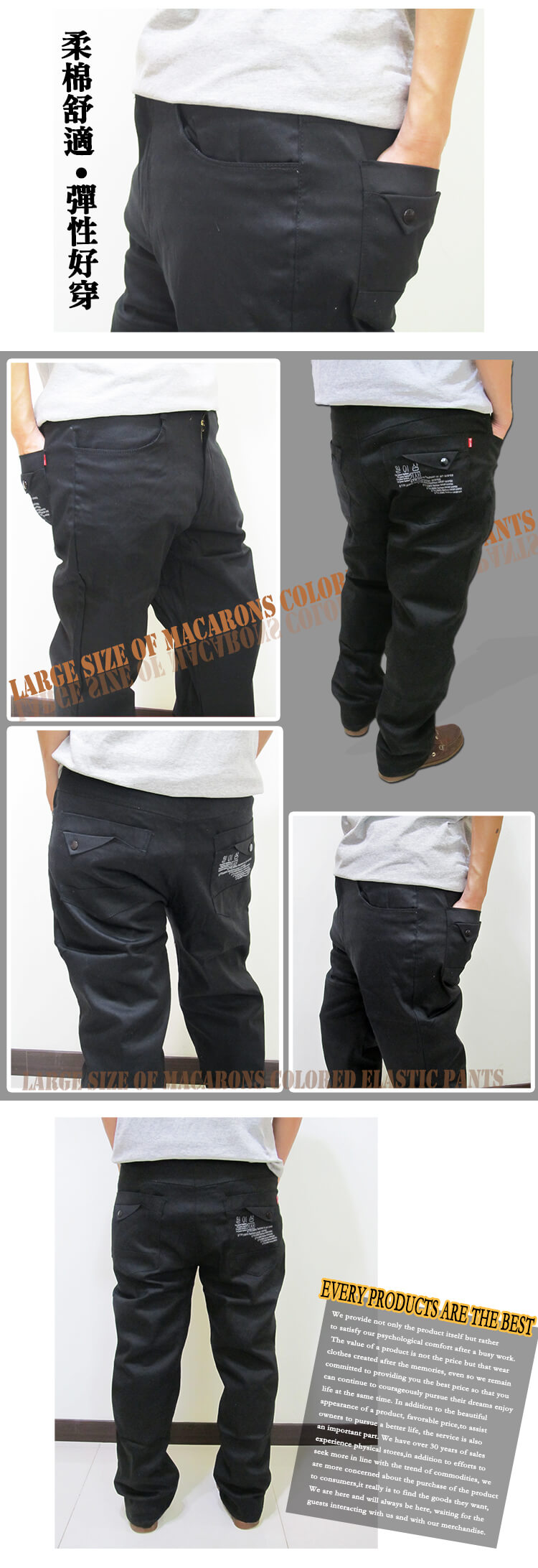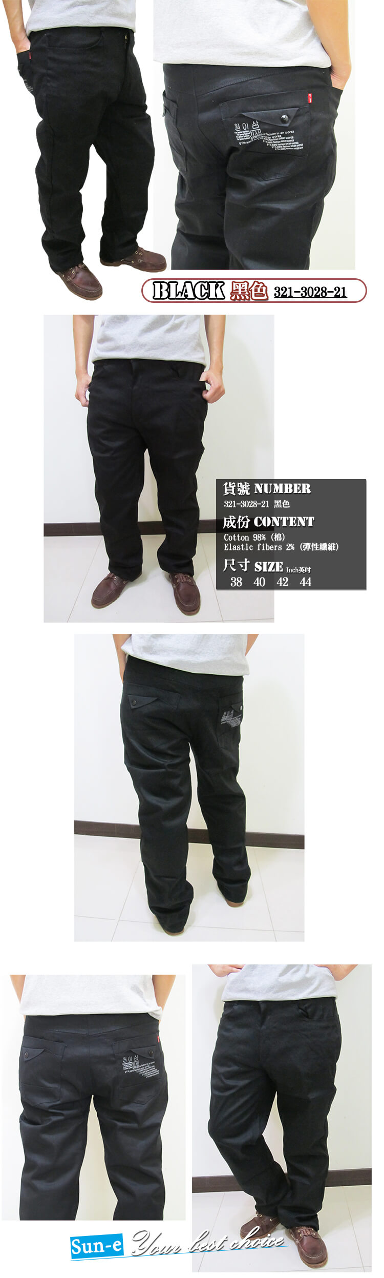 sun-e加大尺碼彈性色褲長褲、加大尺碼馬卡龍色長褲、加大尺碼休閒褲、加大尺碼彈性長褲、後口袋裝飾鈕扣、腰圍有皮帶環(褲耳)、褲檔有拉鍊(321-3028-21)黑色 腰圍:38 40 42 44(英吋) [實體店面保障]