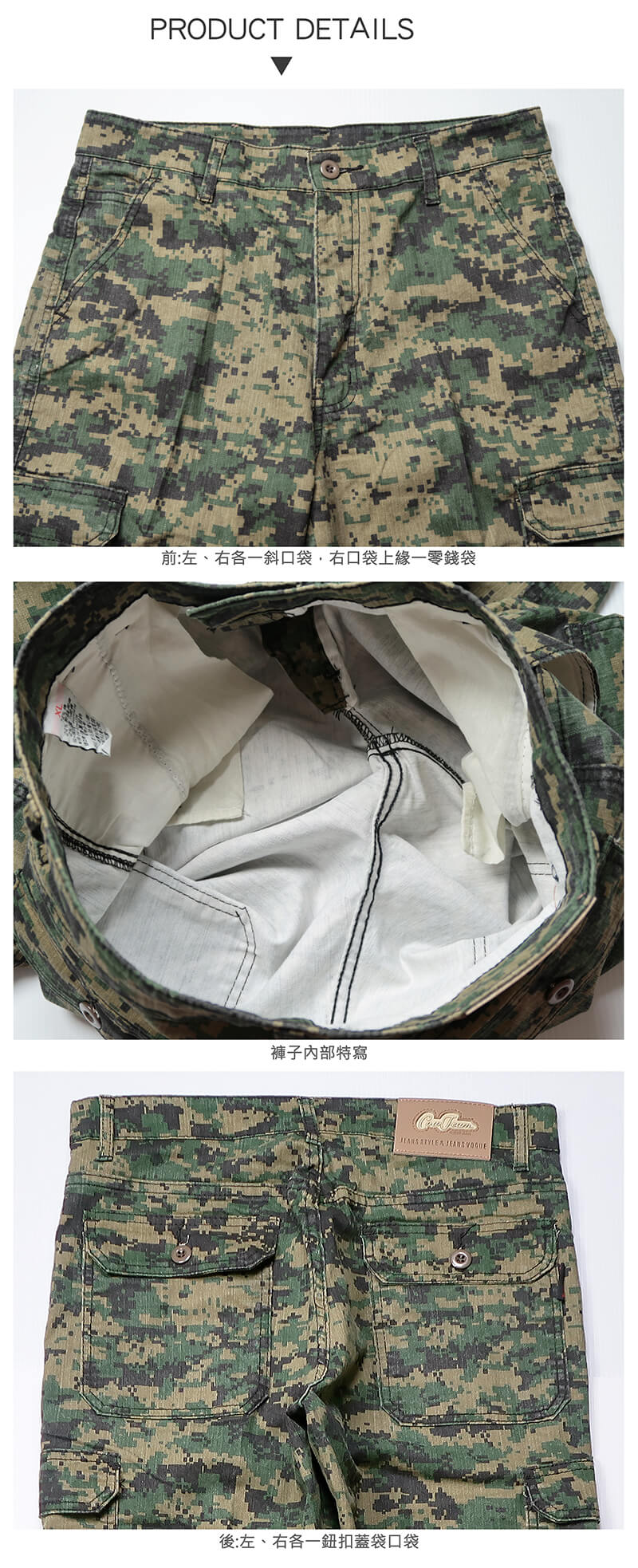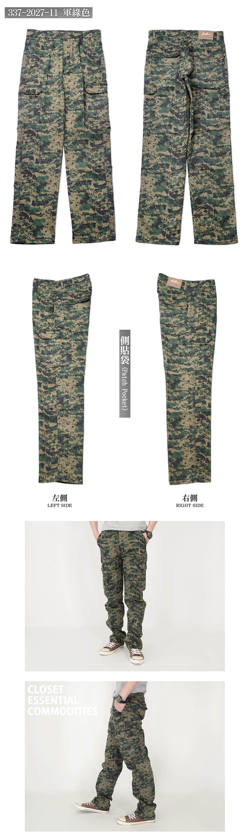 ▍品名 Title sun-e時尚迷彩工作褲、彈性休閒迷彩褲、多口袋中直筒長褲、側貼袋工作長褲、牛仔版型迷彩長褲、口袋褲、工裝褲、CARGO PANTS (337-2026-21)灰色、(337-2027-11)軍綠色 腰圍:M L XL 2L 3L 4L 5L(28~41英吋) [實體店面保障] ▍三件999元特價賣場 Activity ▍成份 Content Cotton 74% (棉)、Polyester24% (聚酯纖維) Elastic fibers 2% (彈性纖維) ▍商品細部描述 Item detail 腰圍有皮帶環(褲耳),褲檔有拉鍊。 前:左、右各一斜口袋,右口袋上緣一零錢袋。 左、右兩側各一鈕釦蓋袋側貼袋。 後:左、右各一鈕扣蓋袋口袋。 厚度:一般厚度。 潮流迷彩工作長褲,多口袋設計,時尚穿搭首選必備! ! (模特兒身高180體重65公斤,展示尺寸:XL) ▍價格 Price 原價:1280元 特價: 399 元 購物滿1000元以上優待免運 ▍尺寸表 Size Chart 以上所標示的尺寸為英吋 如果需要公分請參考以下表格: