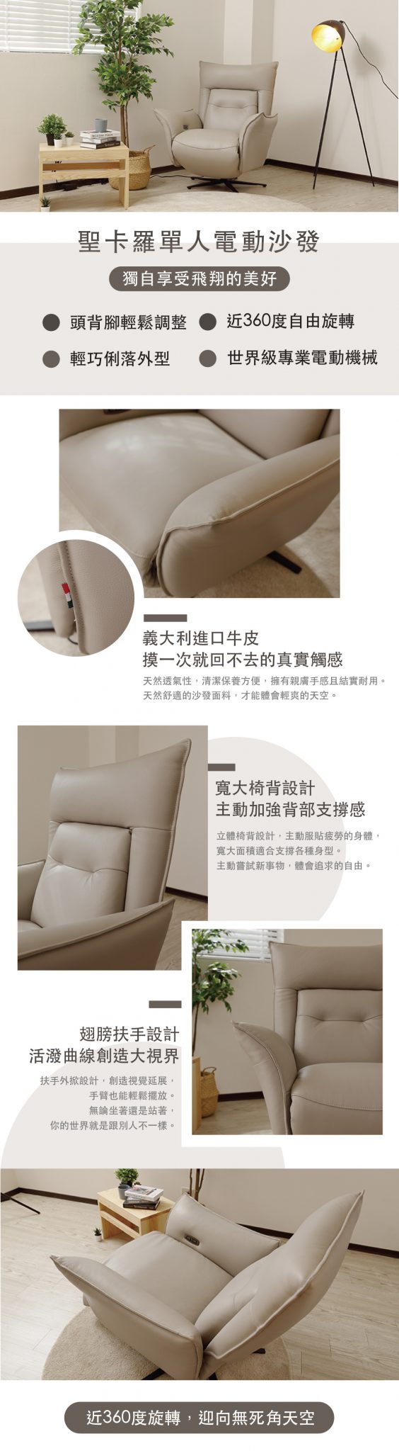 聖卡羅單人電動沙發 0