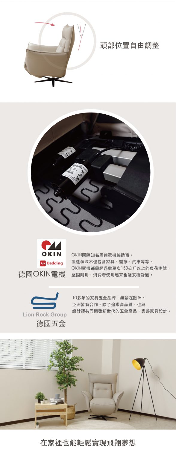 義大利原裝進口牛皮 德國Lion Rock Group原裝五金+德國OKIN電機