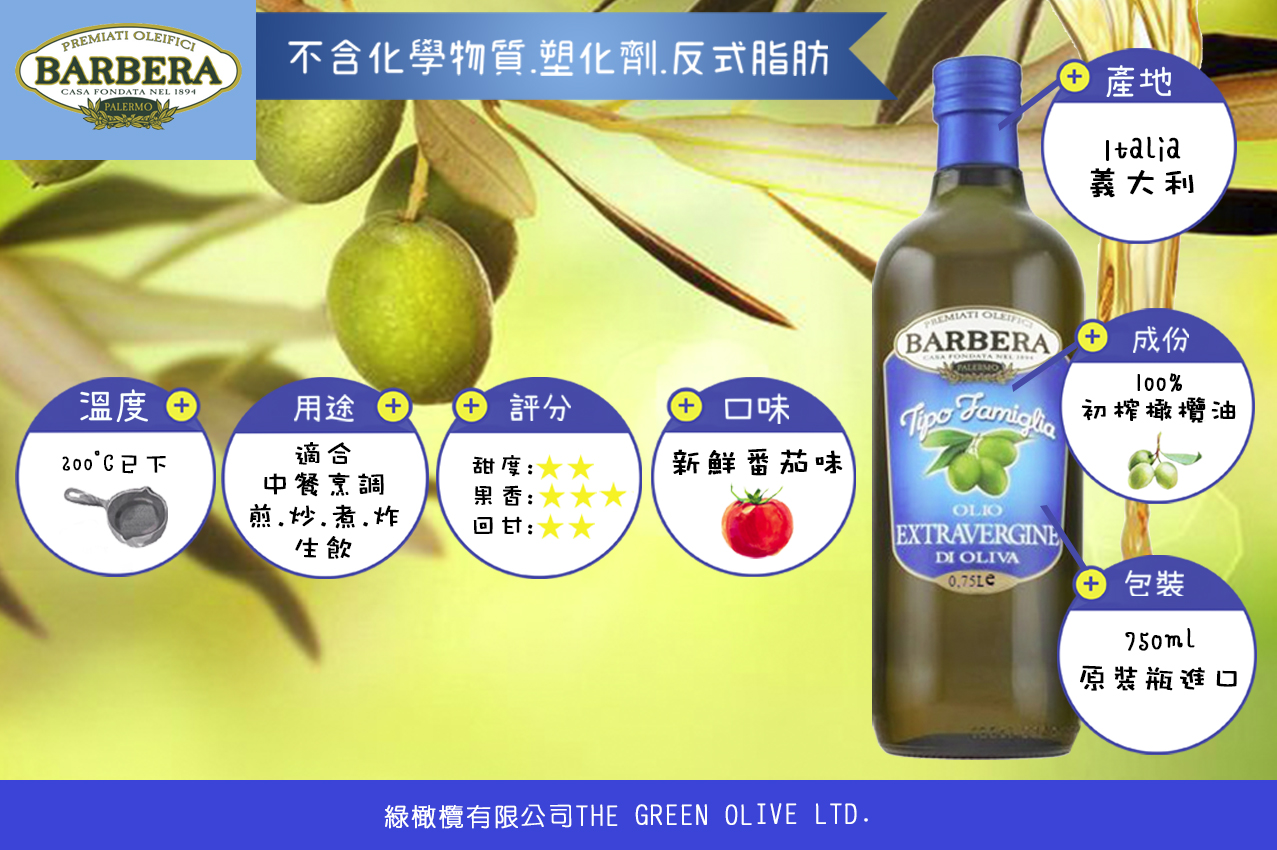 義大利橄欖油專家Barbera家族榮譽出品,獲獎無數。