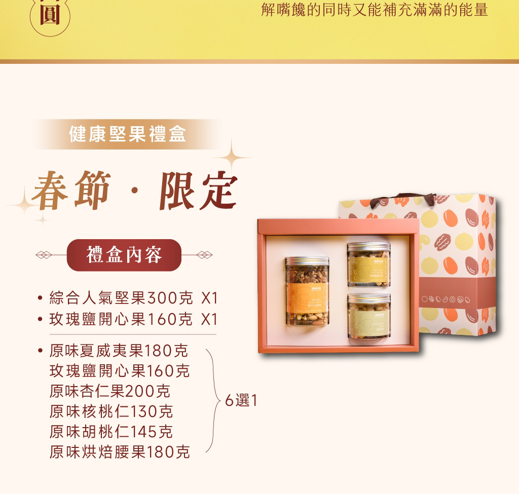 快來挑選專屬您的健康堅果禮盒,讓收禮者感受到滿滿的關懷~