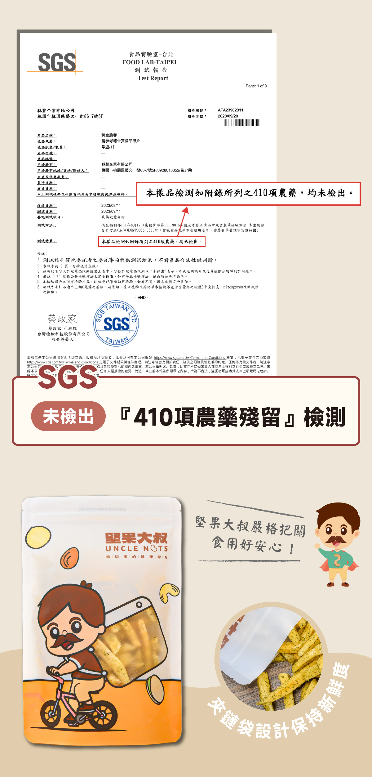 每包 150公克±5% 原產地 : 越南 (台灣加工) 保存期限:8個月(係指未開封狀態) 堅果大叔安心保證 已投保南山產物5000萬產品責任險 SGS各項農藥殘留、黃麴毒素等未檢出