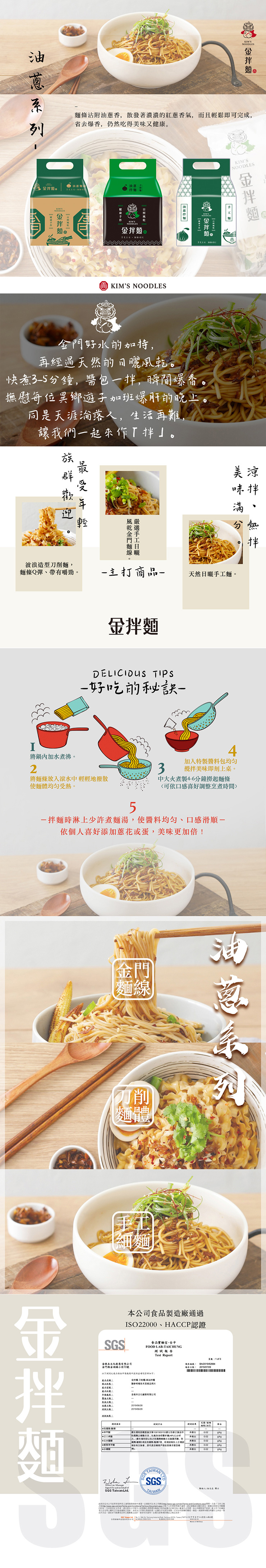 認識金門,從金拌麵開始 手工日曬風乾的金門刀削麵 搭配特製經典油蔥口味 簡單的美味,不簡單的心意